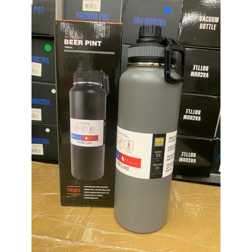 Garrafa Térmica de Água com Alça em Aço Inoxidável - Capacidade de 1,2 Litro ou 1200ml