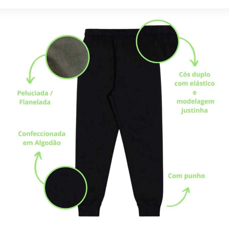 Kit 2 un. Calça Moletom Infantil Flanelada com Punho, Bebê, Juvenil
