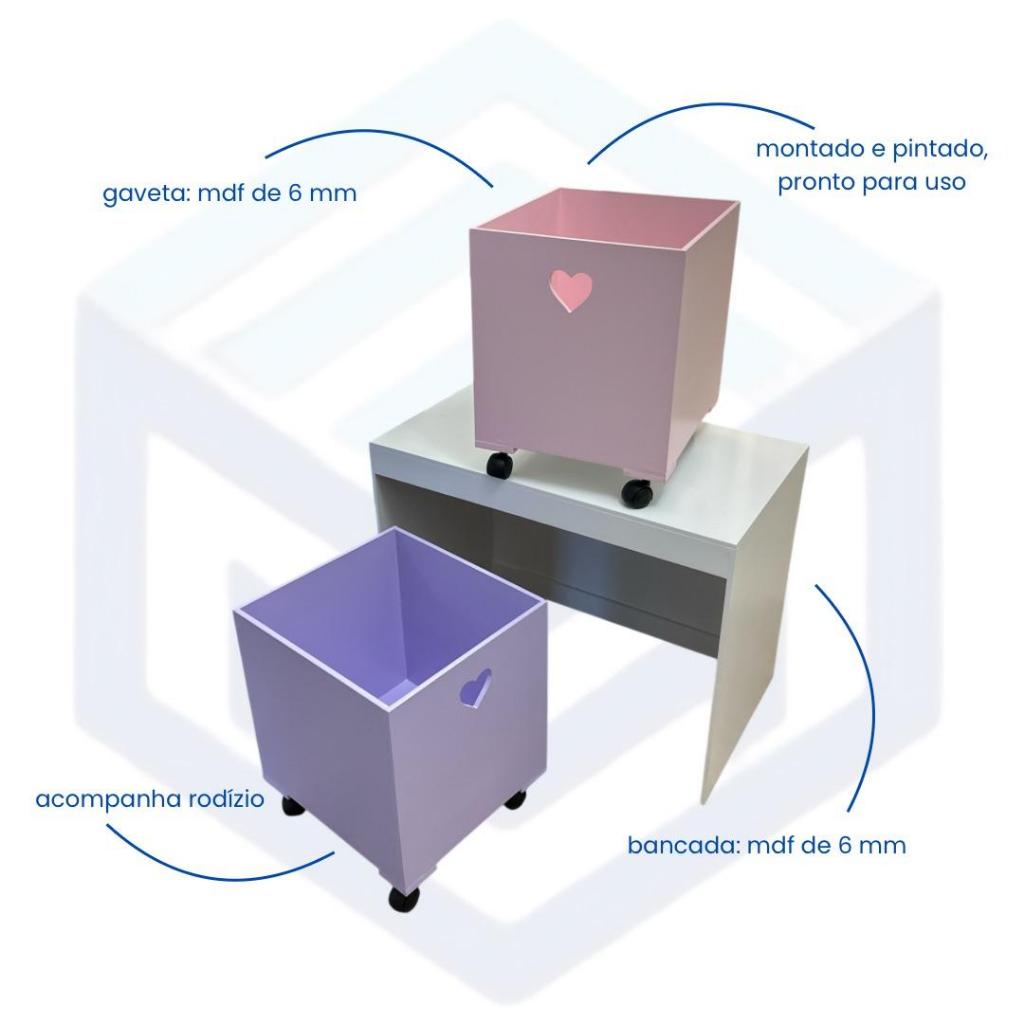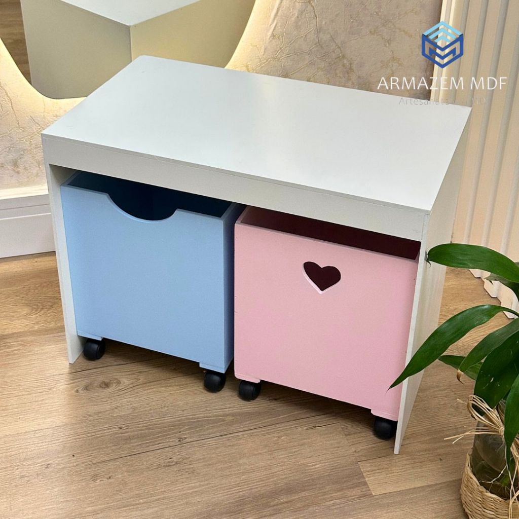 Organizador de Brinquedos Bancada Infantil 2 Gavetas Com Rodinhas em MDF