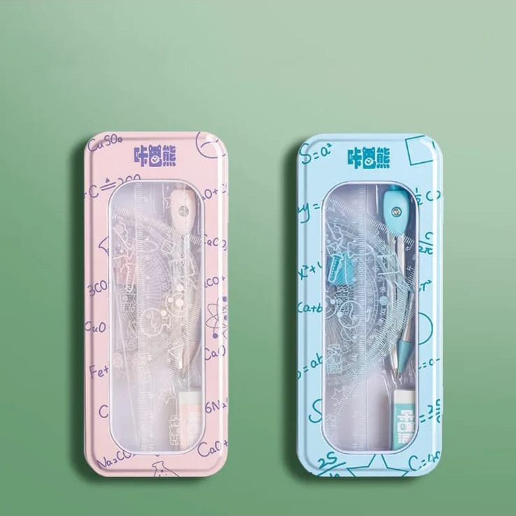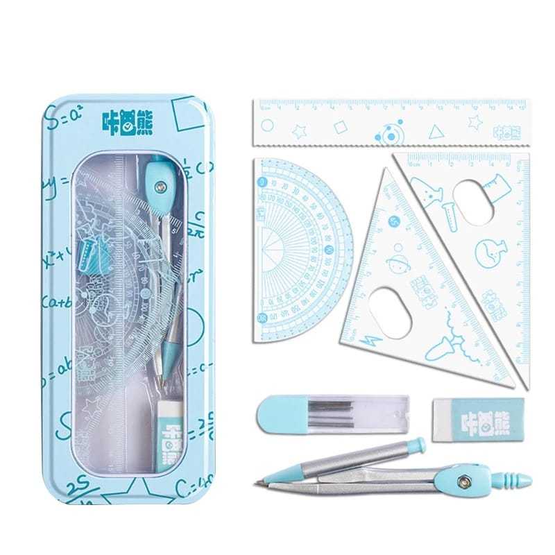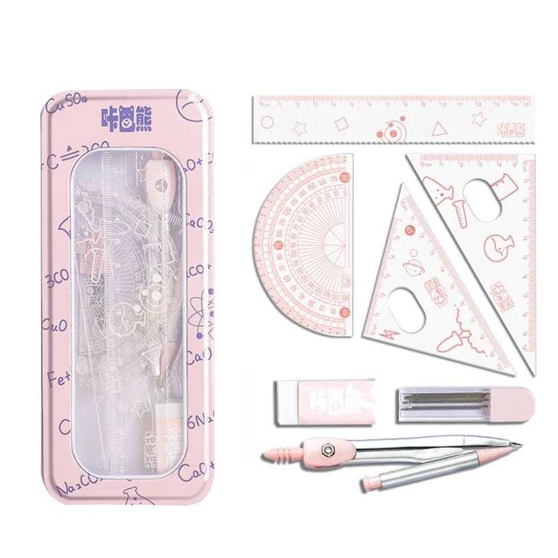 Conjunto de régua de bússola, régua triangular fofa, material de papelaria para estudantes