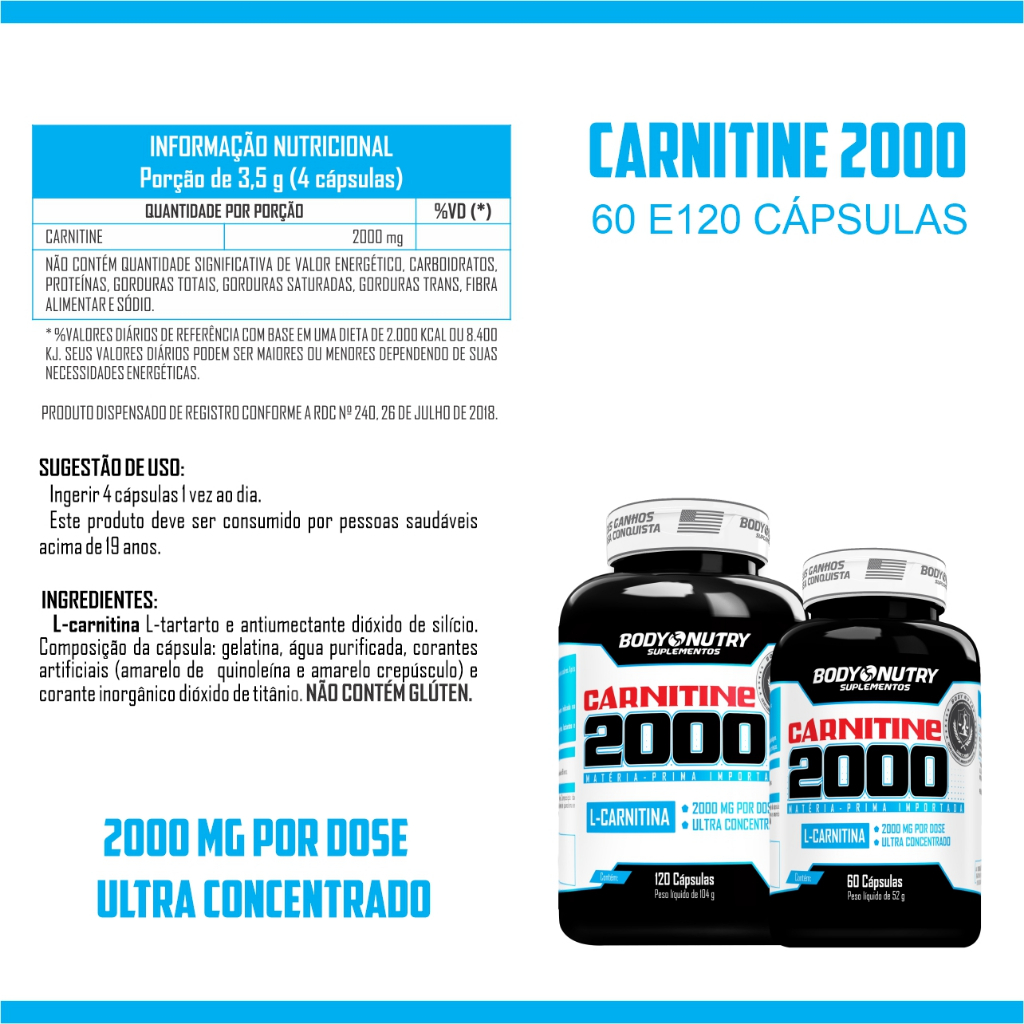 L-Carnitina, 2000mg - Body Nutry (CARNITINA PURA 2000mg)