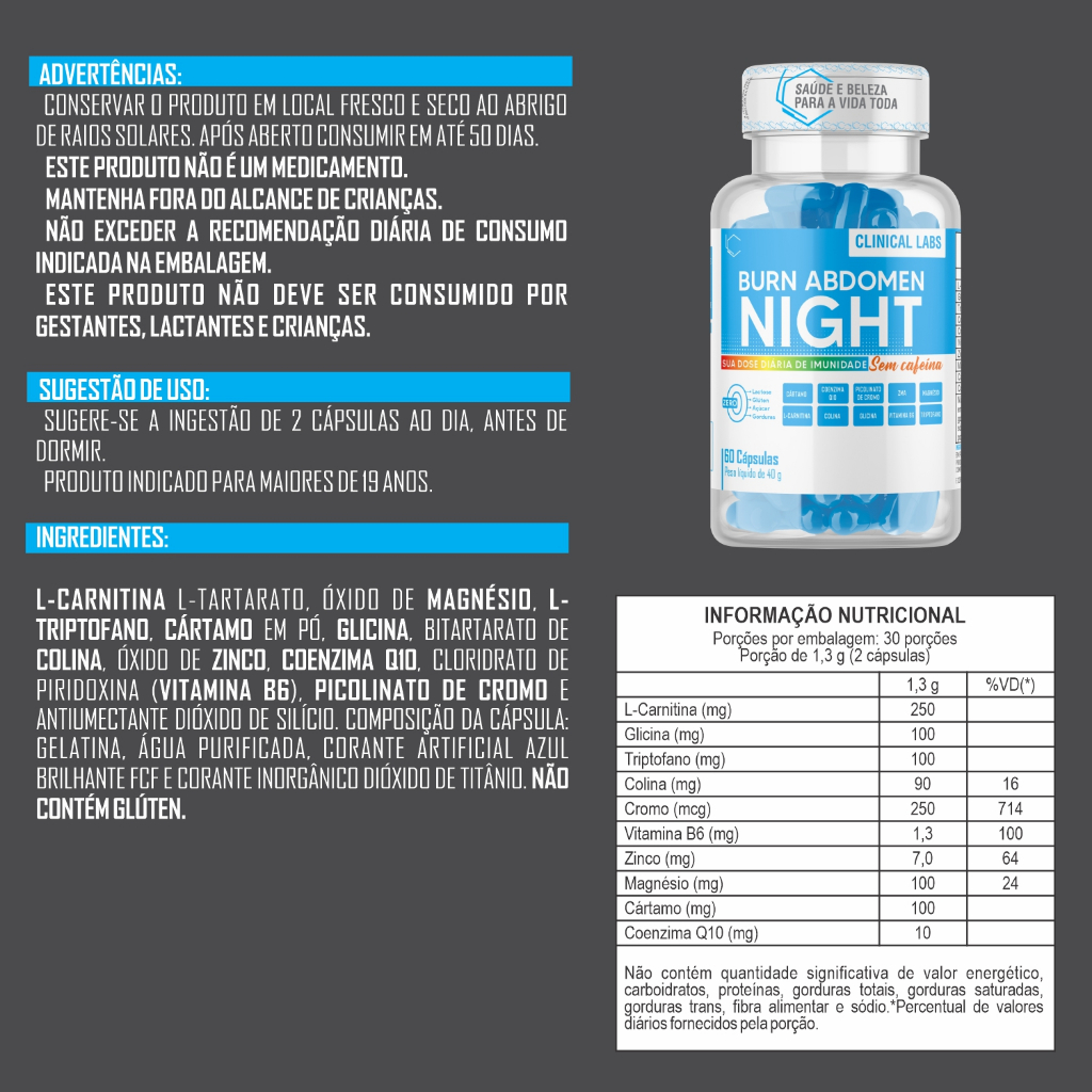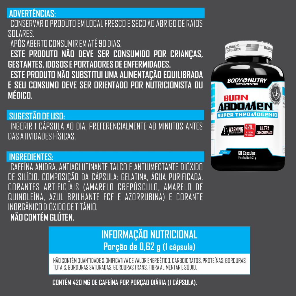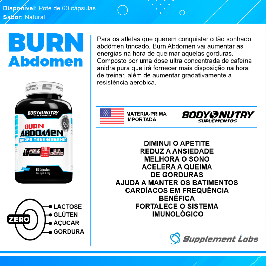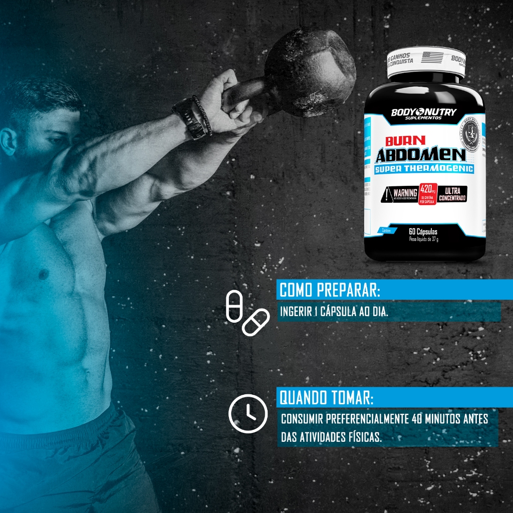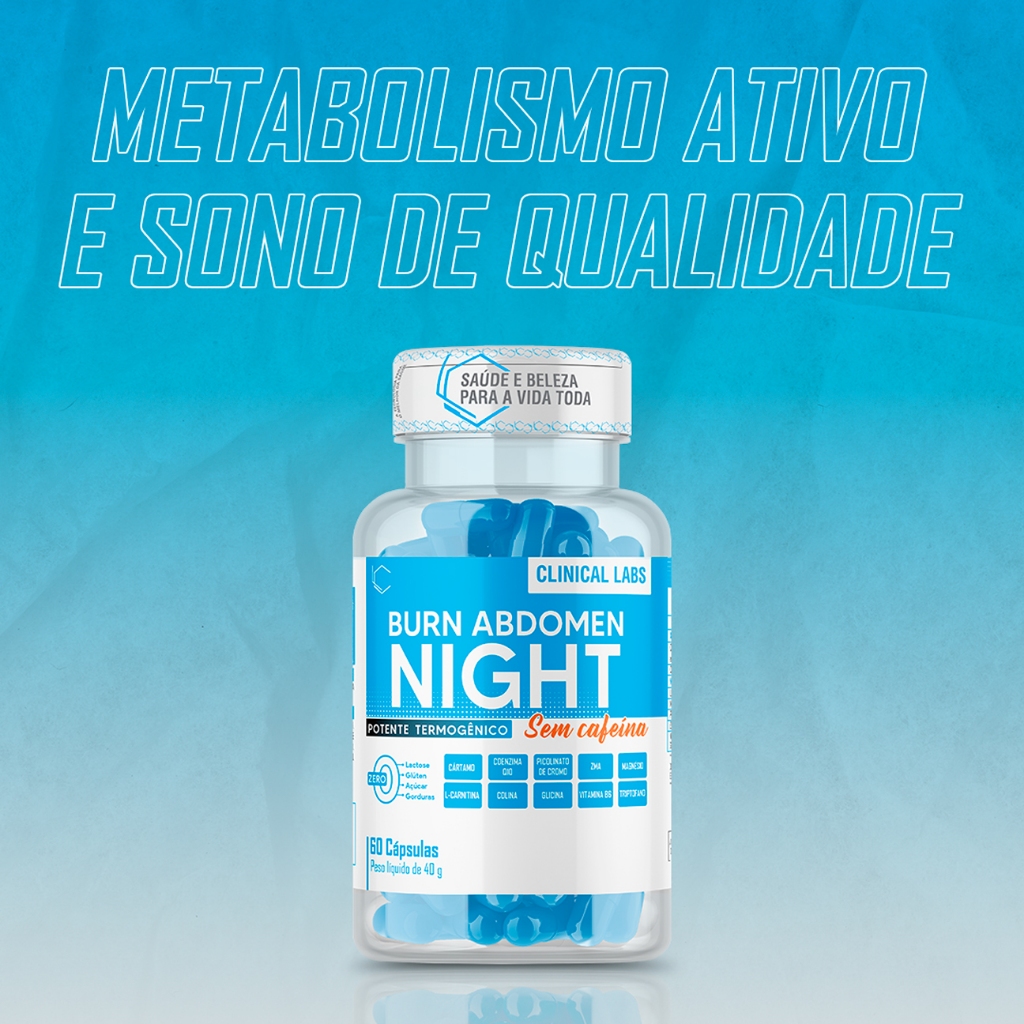 Kit Seca dia + Seca Noite - Burn Abdomen, 60 cáps + Burn Abdomen Night, termogenico Sem Cafeina, 60
