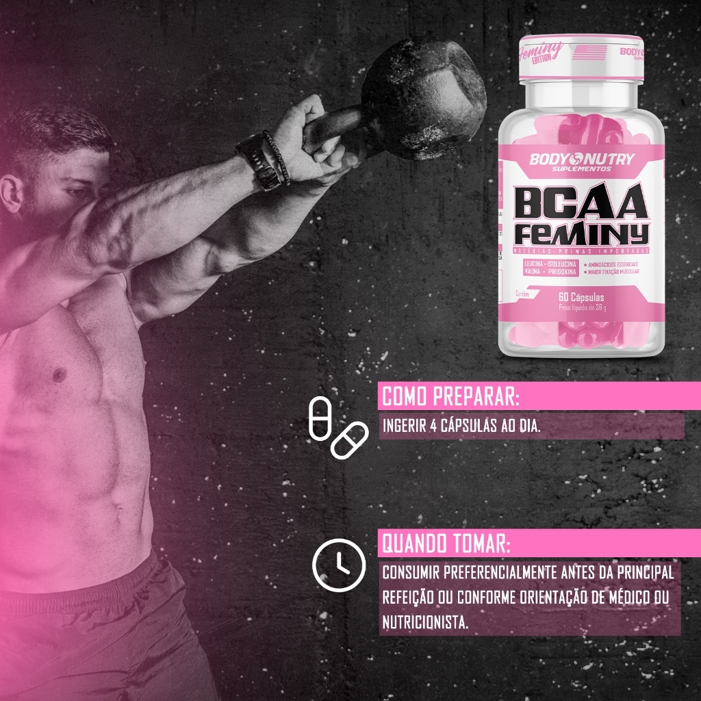 Bcaa Feminy - 60 cáps, Body Nutry Suplementos