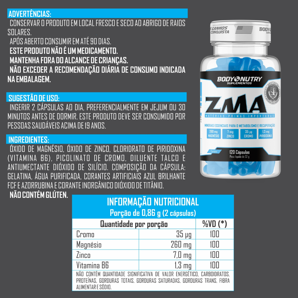 5x Zinco, Magnésio, B6 e Cromo - ZMA - Pré Hormonal - 60 Cápsulas