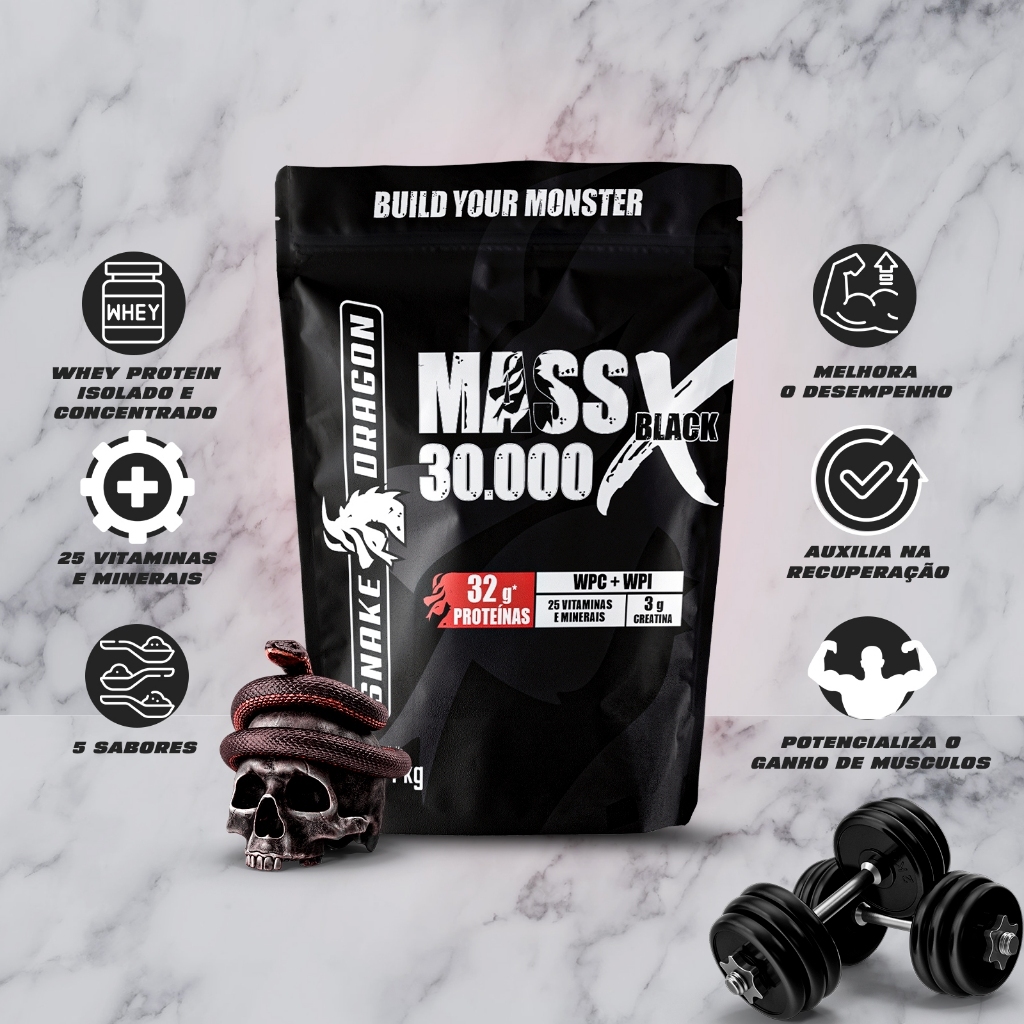 Kit 2x Hipercalórico c/ CREATINA Mass 30000, 1,4kg - Snake Dragon (Ganho de Massa e Peso)
