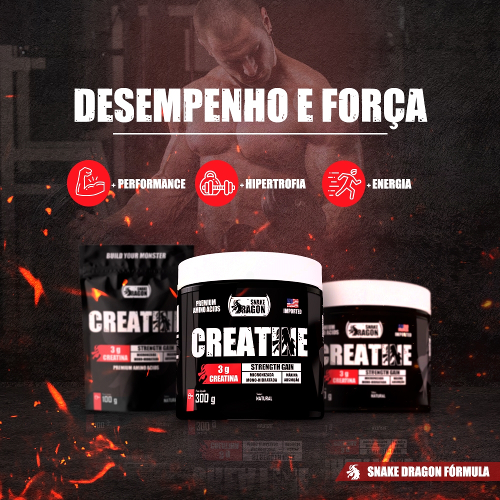 Kit Suplemento Whey Protein 500g + Pré Hormonal, Testo 60 cáps + Creatina 100g - Snake D + Coq PROMO
