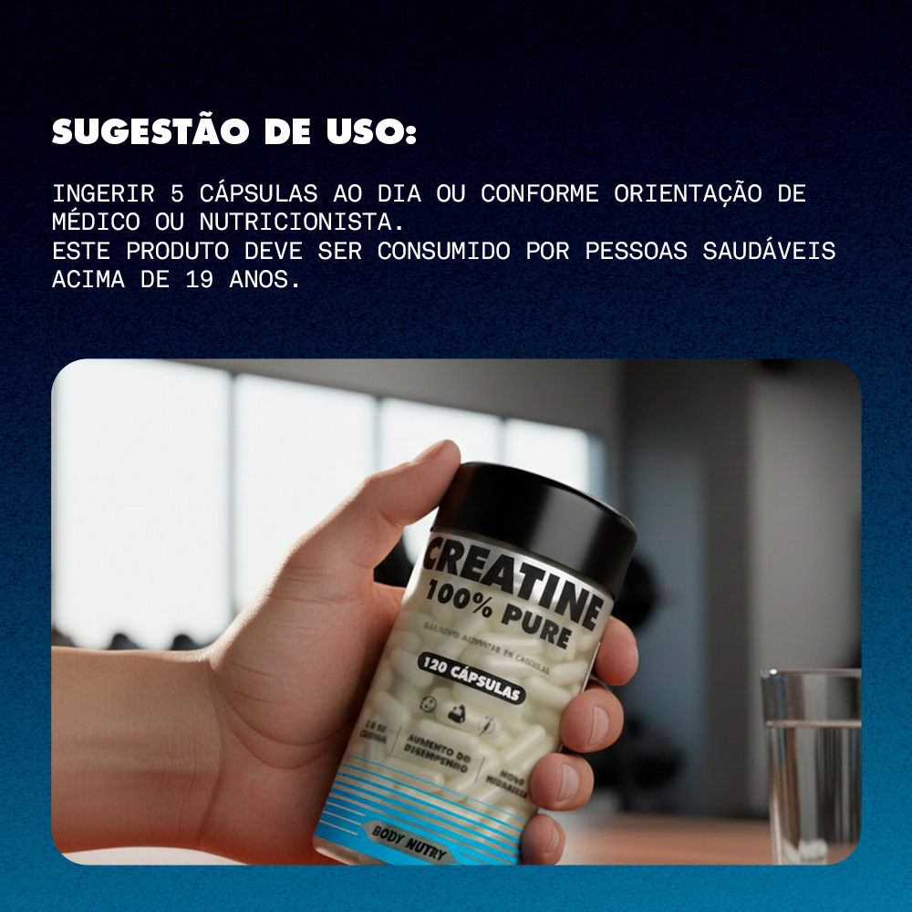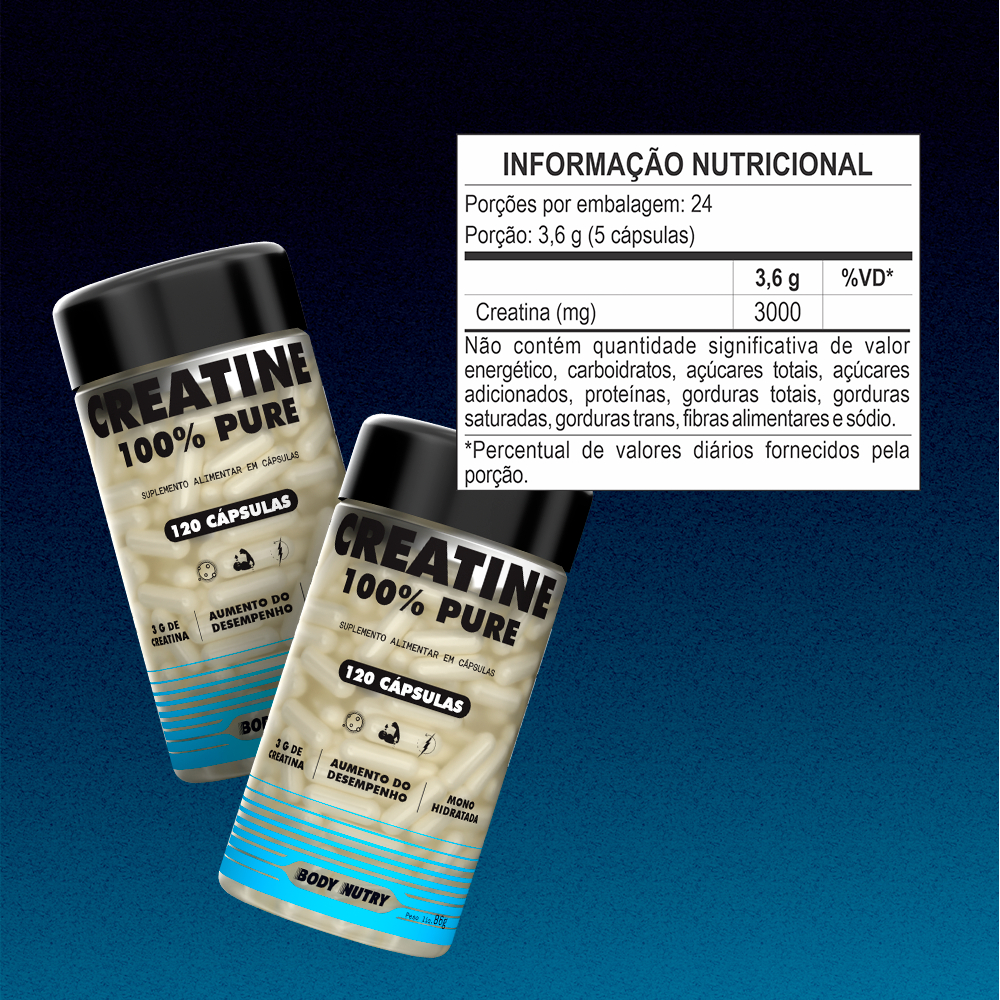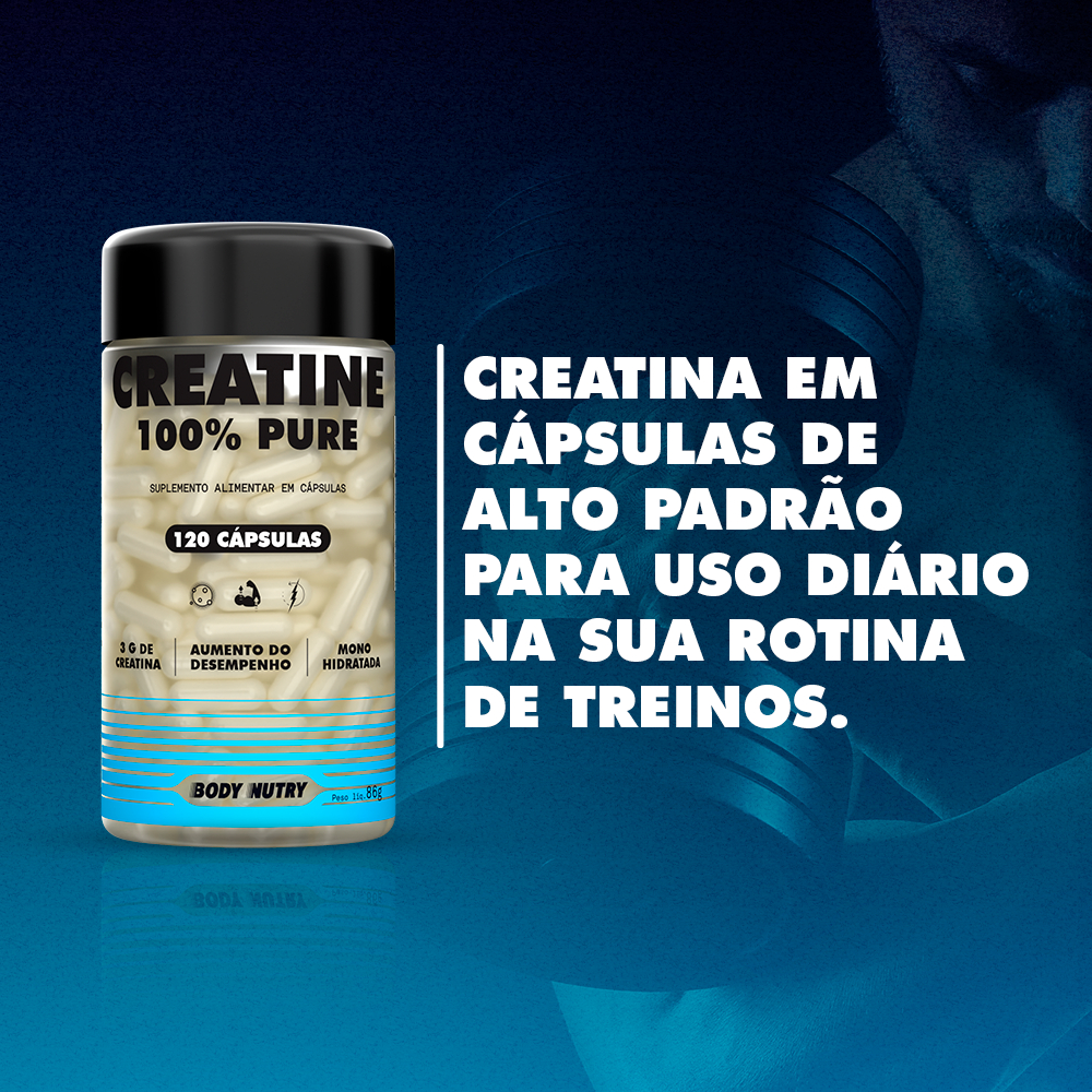 Creatina 100% Pura 120 Cápsulas Aumento de Força e Melhora na Recuperação - Body Nutry Original