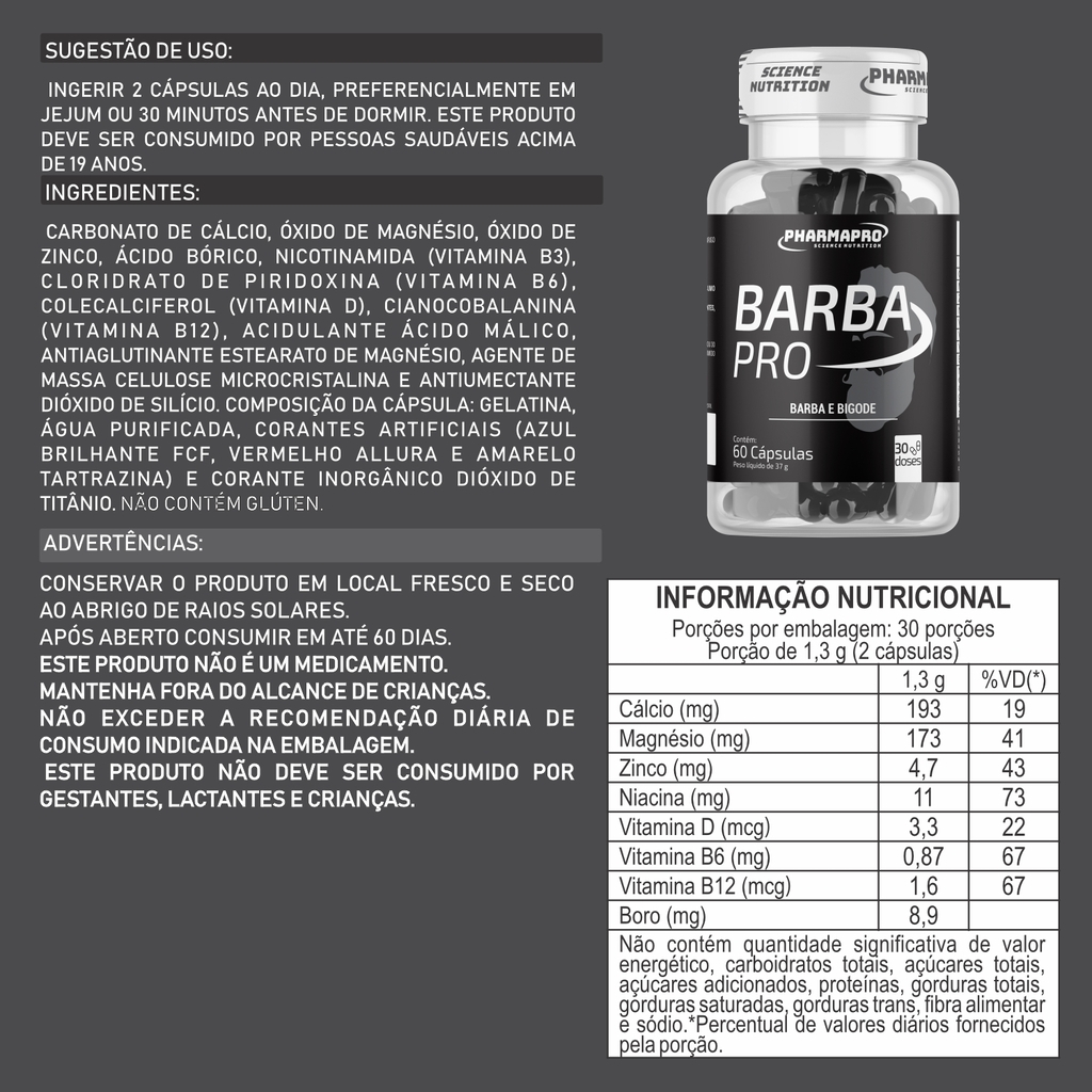 3x Barba Pro, Pharma Pro - Fortaleça sua Barba (180 Cápsulas)