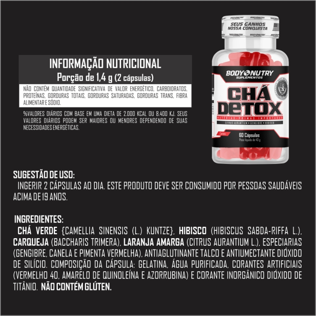 Chá Detox Body Nutry - Secante e Diurético - 60 cápsulas