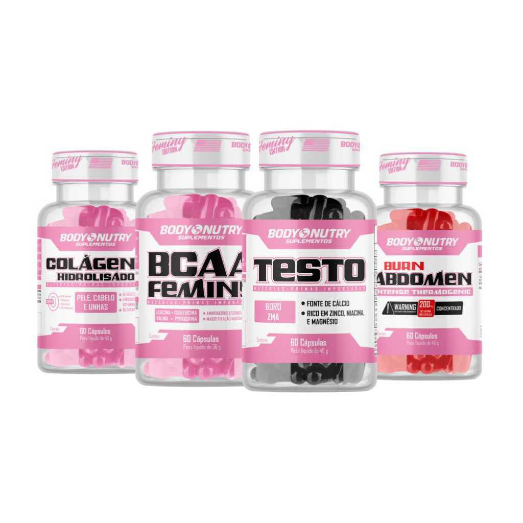 Colageno Hidrolisado Feminino + Testo Feminy + BCAA Feminy + Burn Abdomen Feminy
