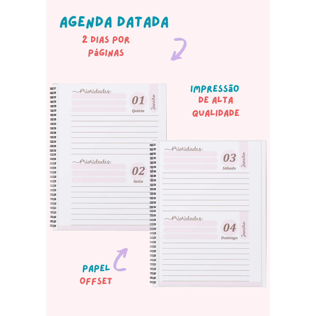 Agenda 2026 - A5 - com nome na capa. Escolar/ Maternal/ Berçario/ Creche - com elástico e bottons - Minnie #017
