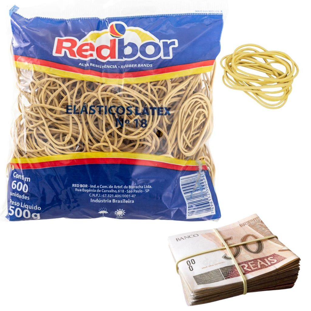 Elástico Super Resistente Bege Fino 500gr c/ 600 Unidades Nº18 Red bor Amarrar Dinheiro Pamonha