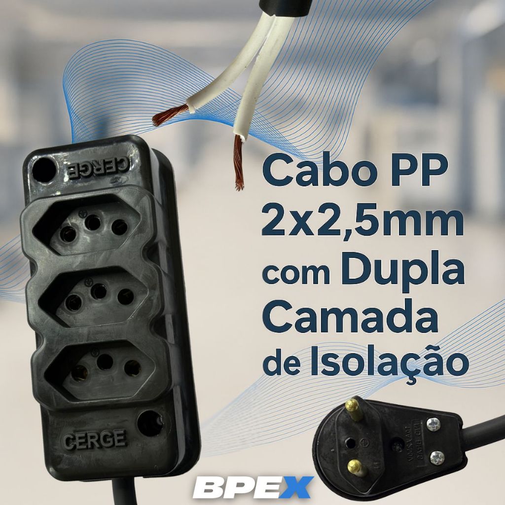 Extensão Elétrica Paralela 2x2,5 Cabo Grosso PP com | Varias Metragens