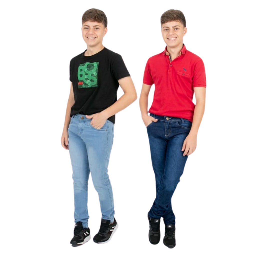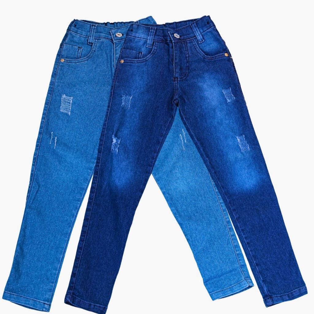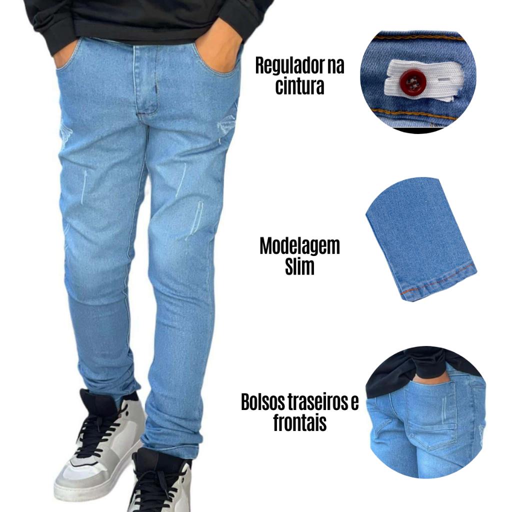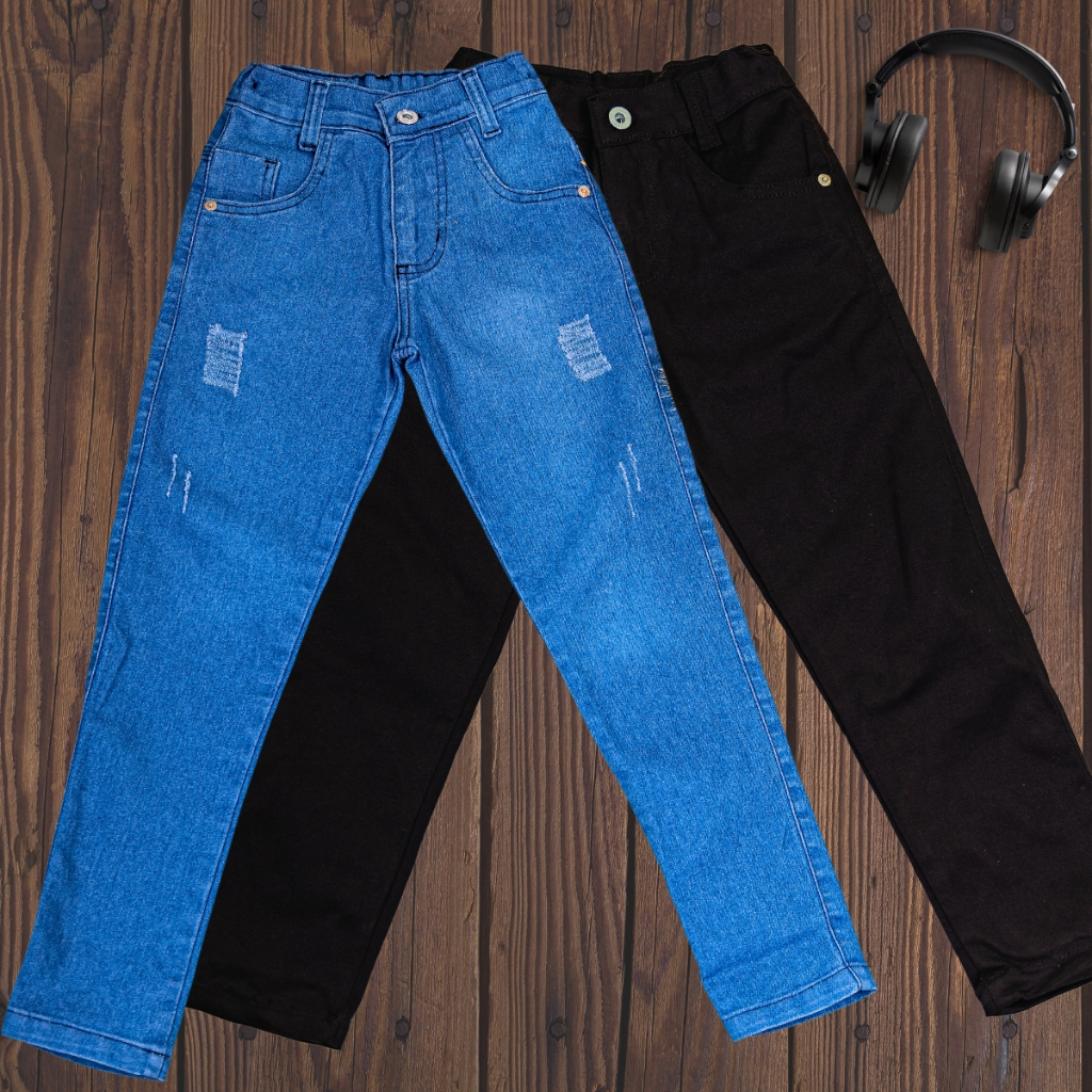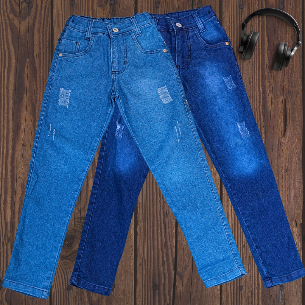 Kit de 2 calças jeans masculina calça infantil com regulador calça skinny para menino