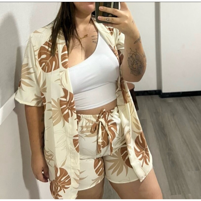 Conjunto Feminino Estampado Tropi c/ Chamise & Short J-1