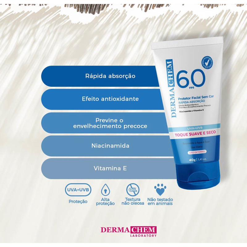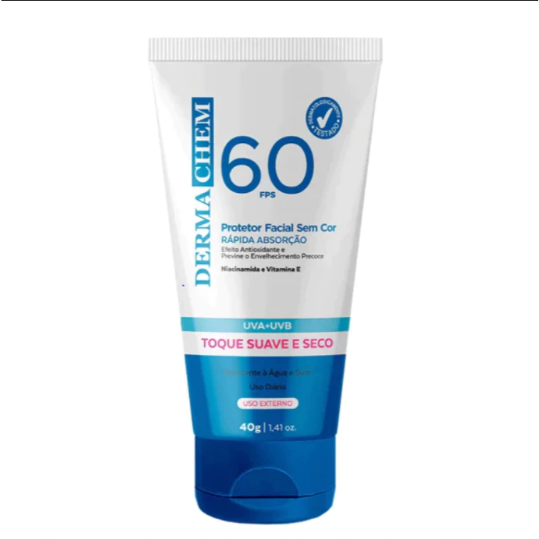 Dermachem Protetor Solar Facial Rosto FPS 60 Sem Cor Toque Seco Hidratante Rejuvenescedor 40g