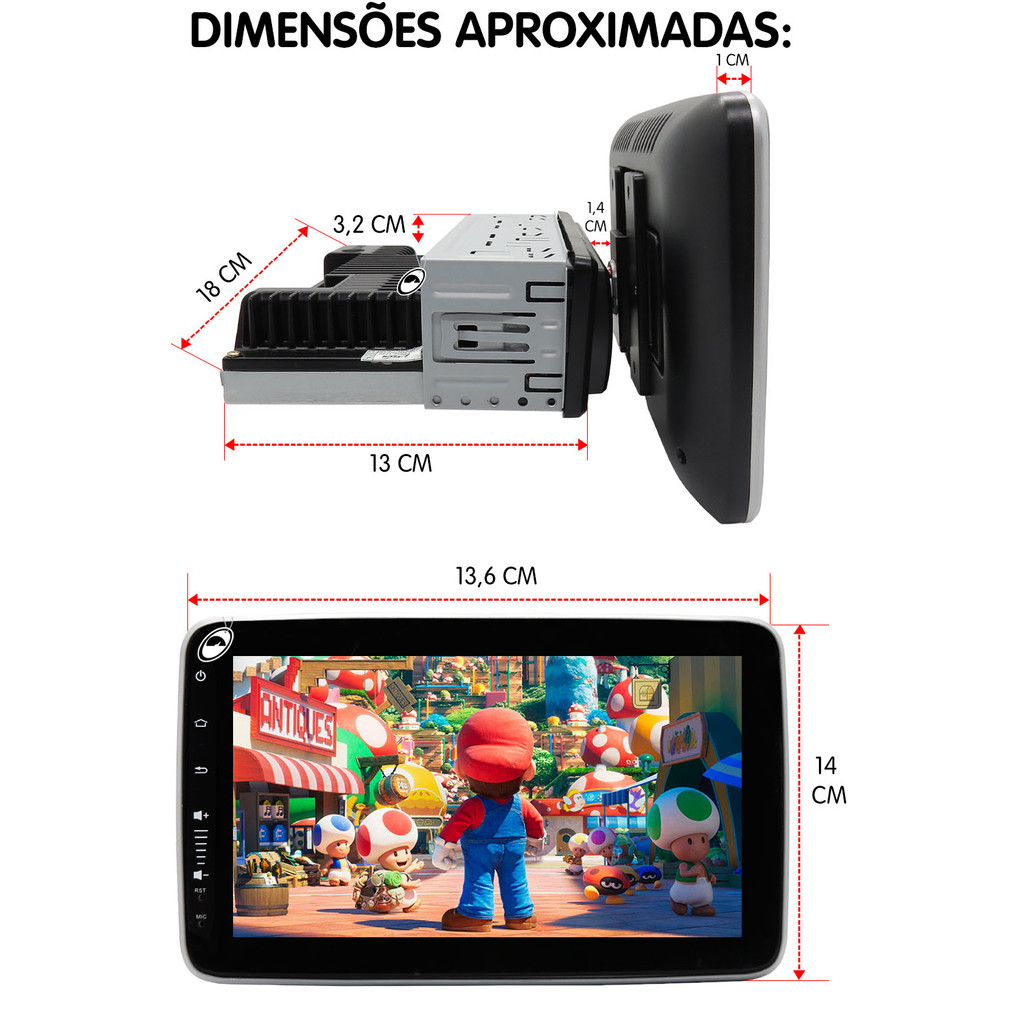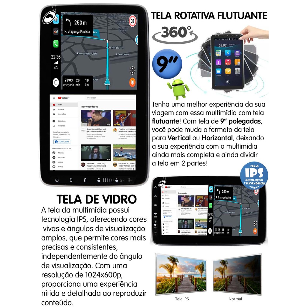 Multimídia Traseira 1 Din 9" Polegadas Tela Rotativa H-Tech HT-9290CA 2GB Ram 32GB