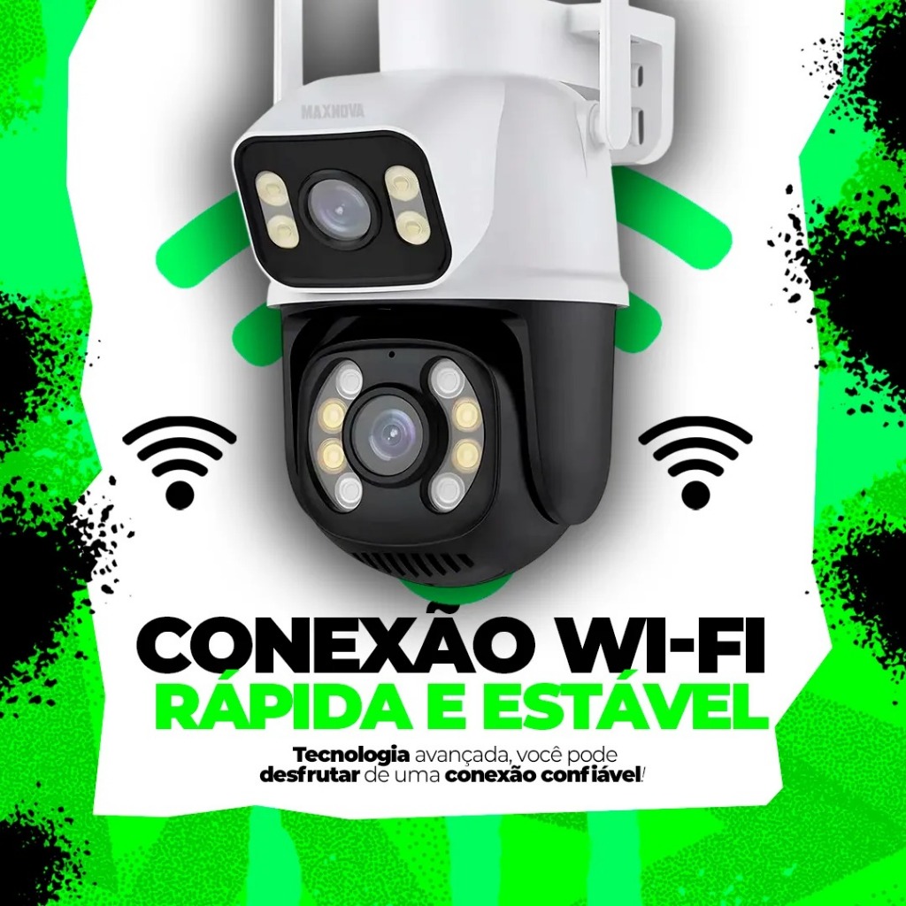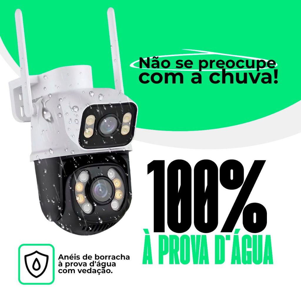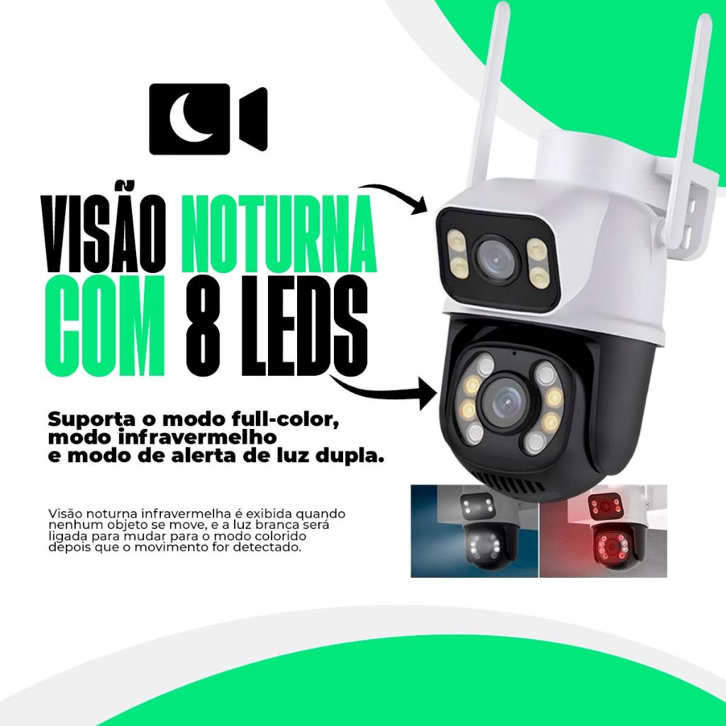 Camera De Segurança Ip Externa Wifi Dupla Lentes 2 Em 1 Visao Noturna Cor Branco Com Preto
