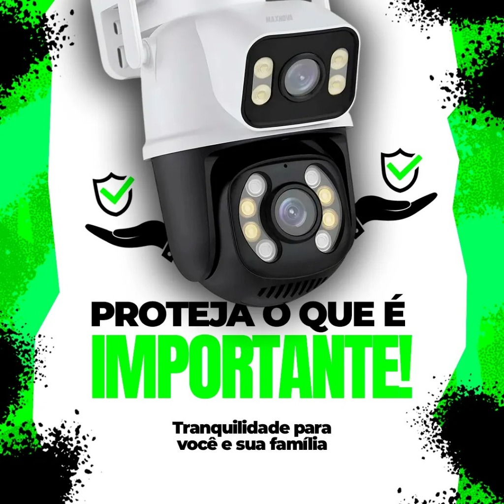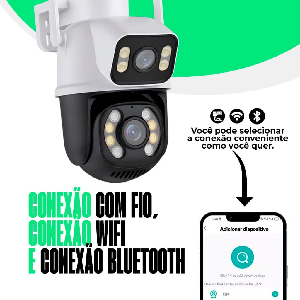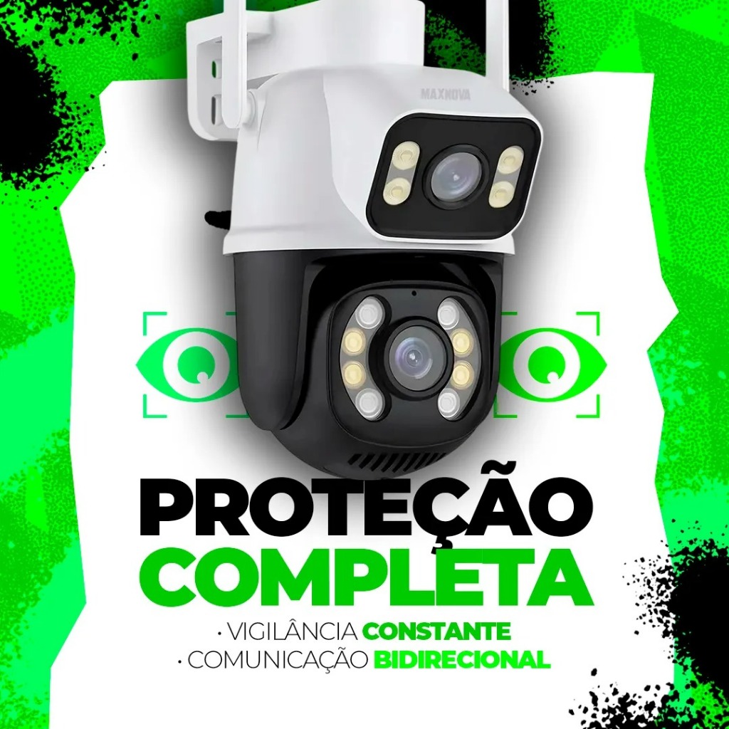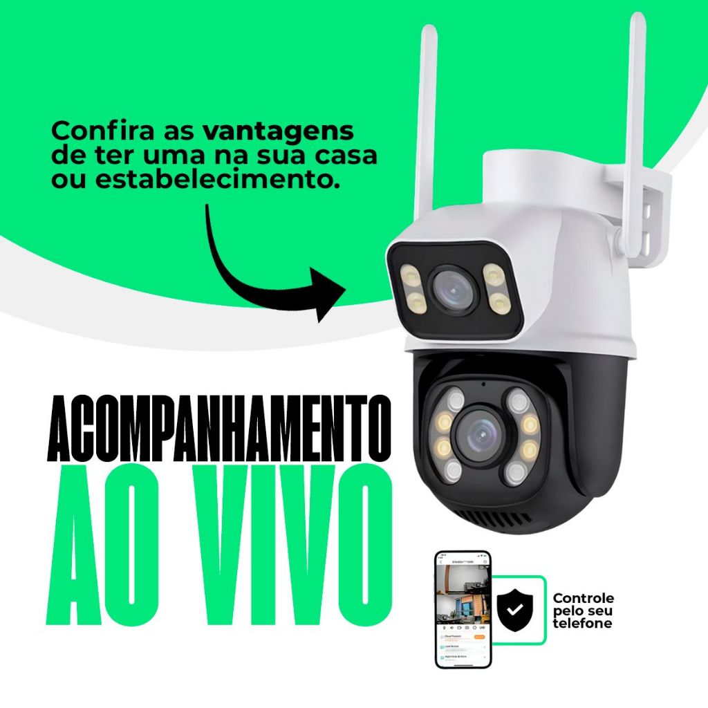 Camera De Segurança Ip Externa Wifi Dupla Lentes 2 Em 1 Visao Noturna Cor Branco Com Preto