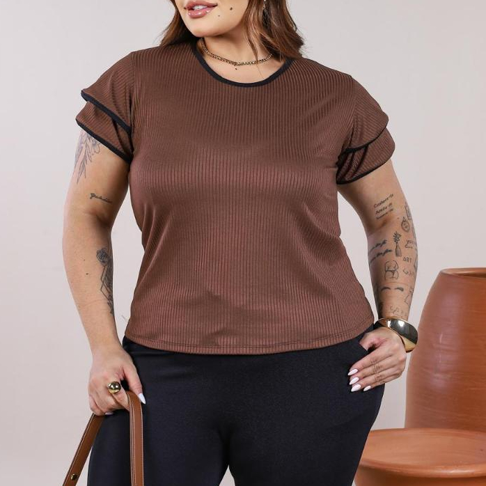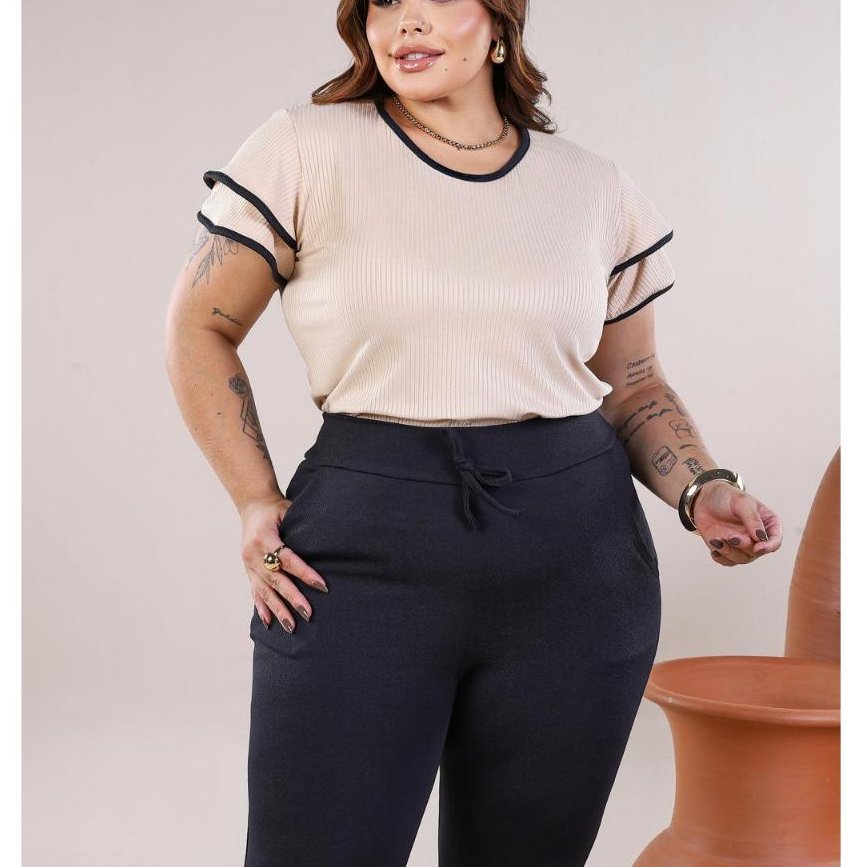 Conjunto Plus Size Calça Crepe de Malha com Blusa Canelada | Veste do 46 ao 54