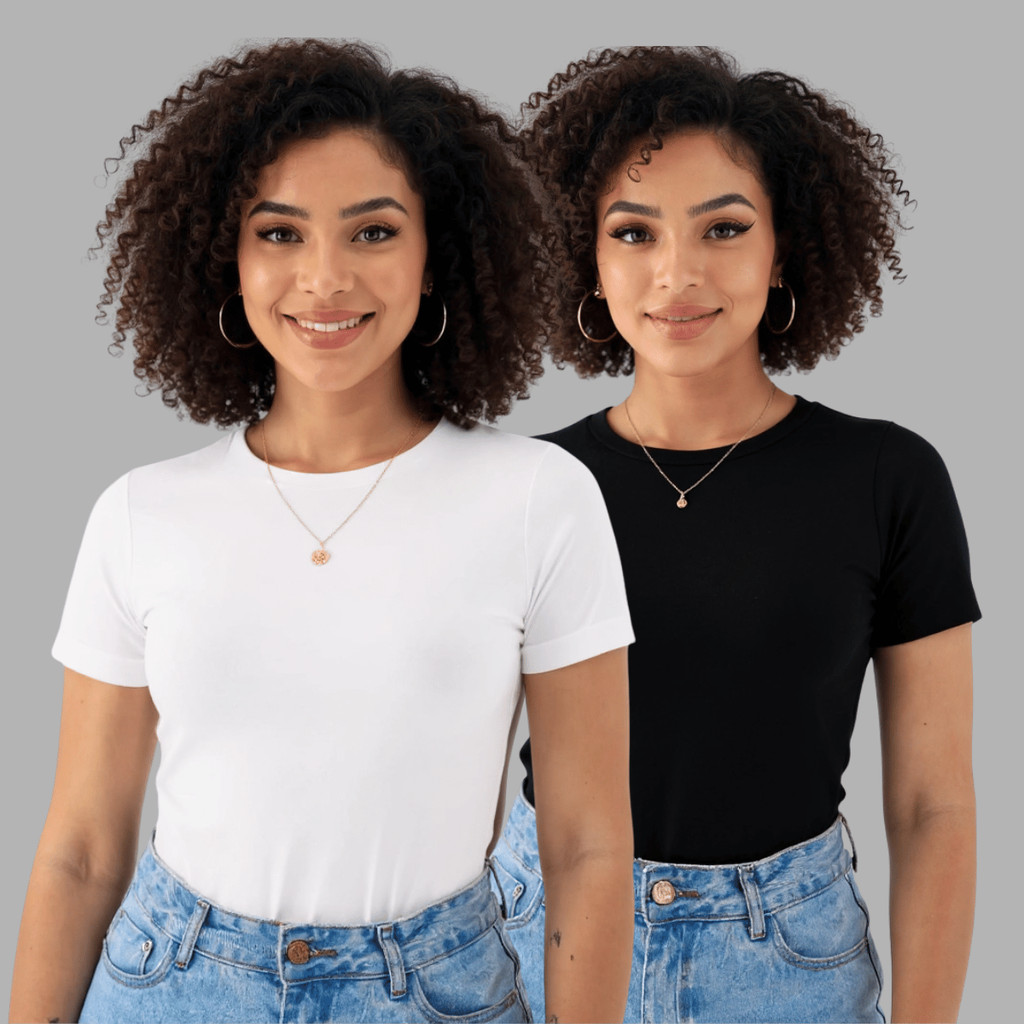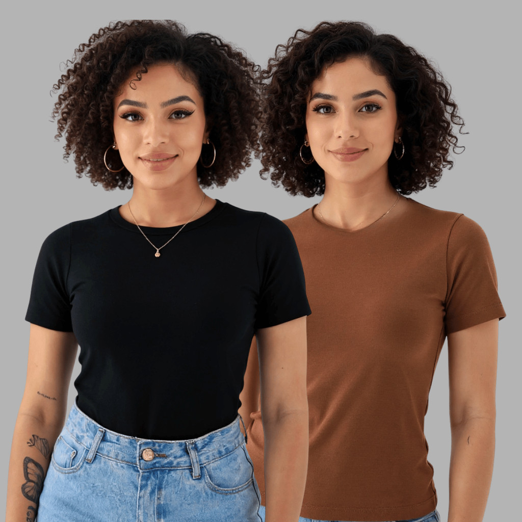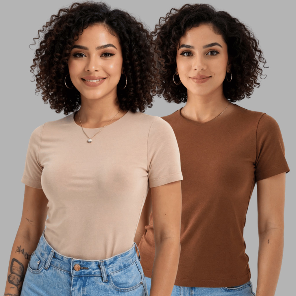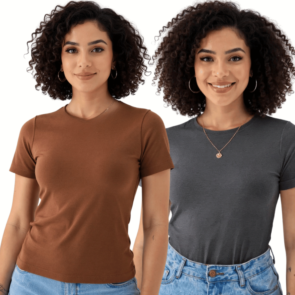 kit 2 Blusas Suplex Manga Básica Feminina Manguinha Premium Qualidade Camiseta