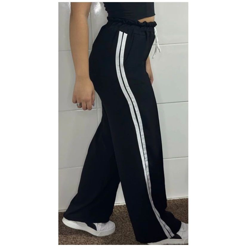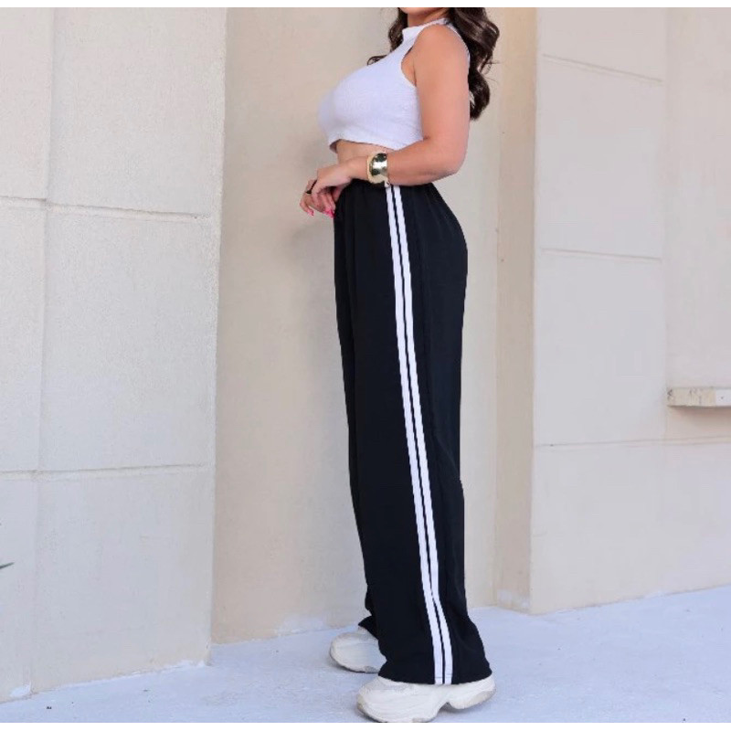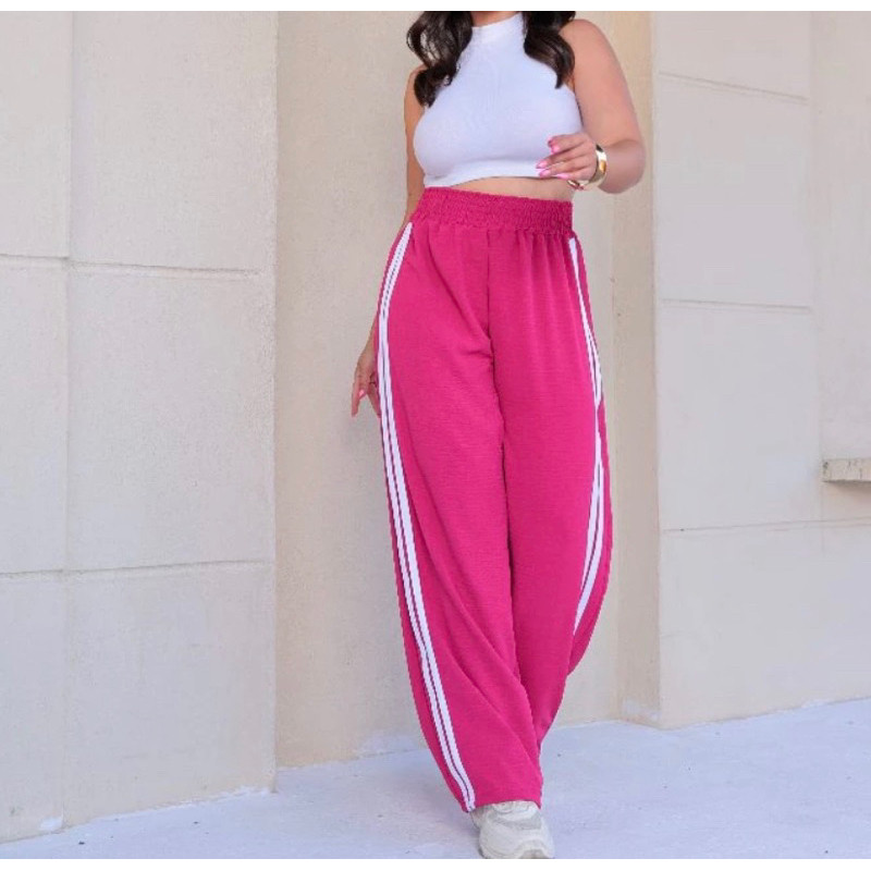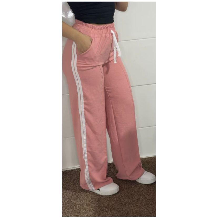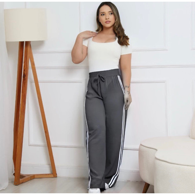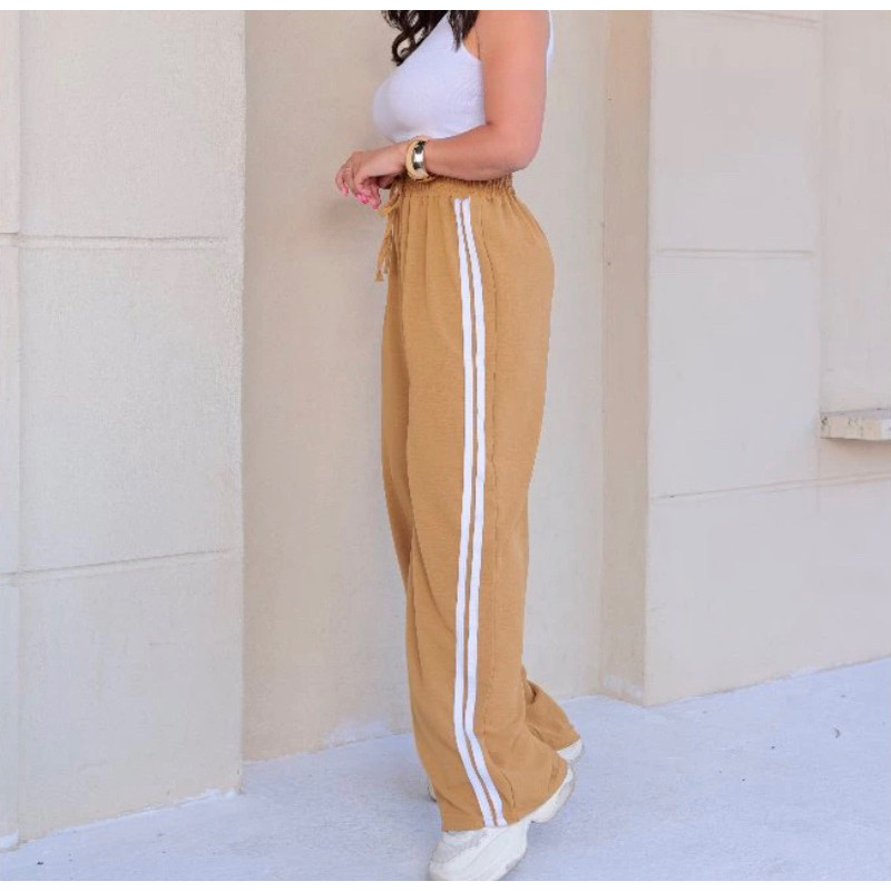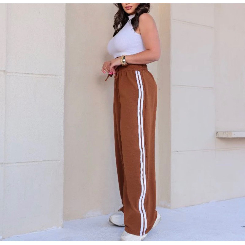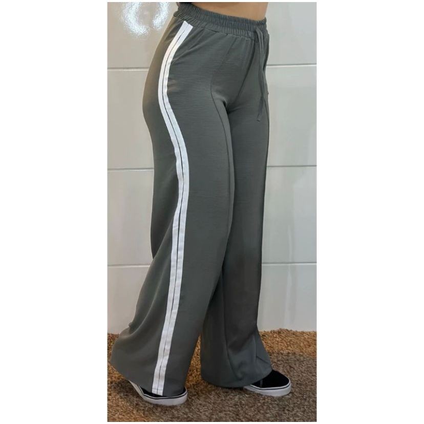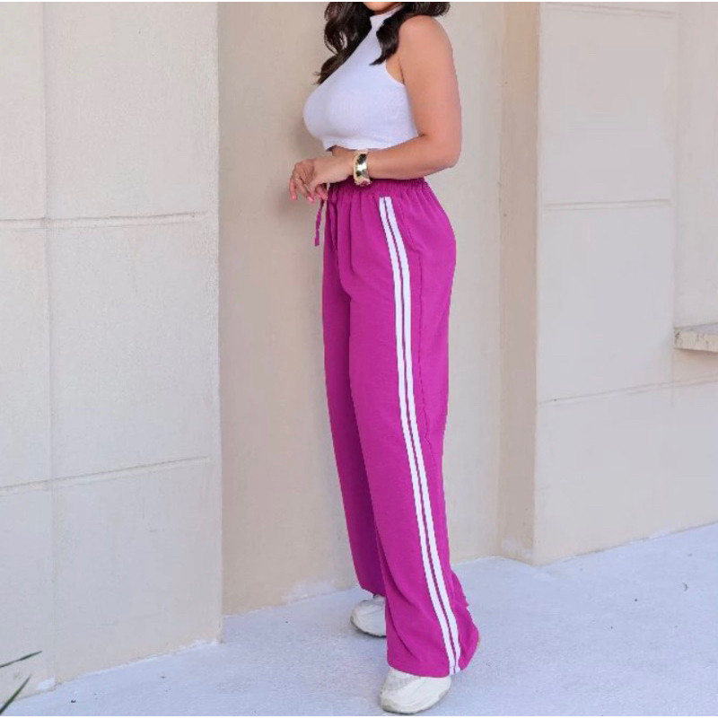 Calça Pantalona Feminina com Listras Tecido Alfataria Várias Cores Confortável e Leve