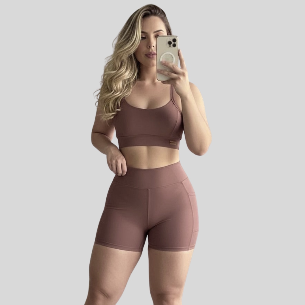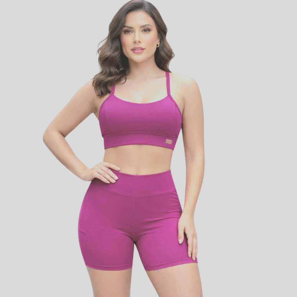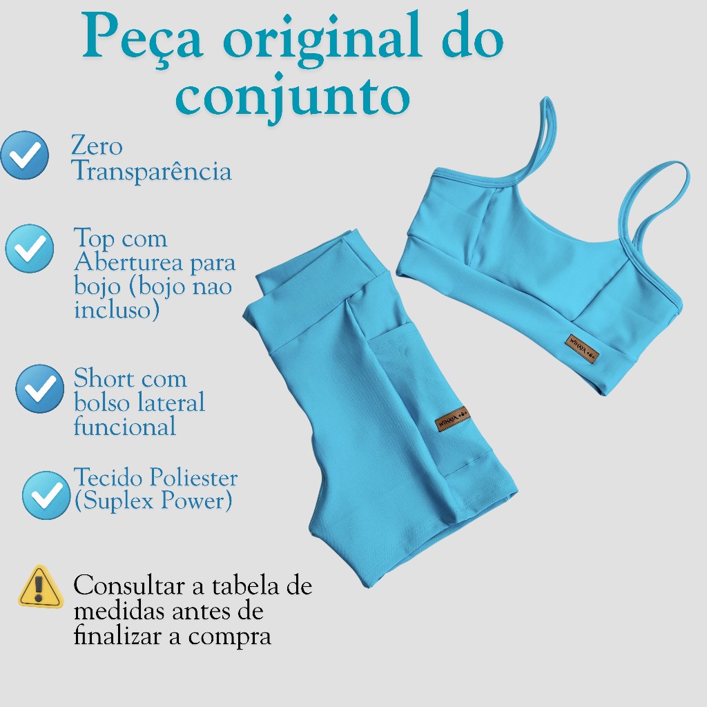 Conjunto Academia Feminino Suplex Power Zero transparência top de Alcinha Short Com Bolso Treino e Corrida