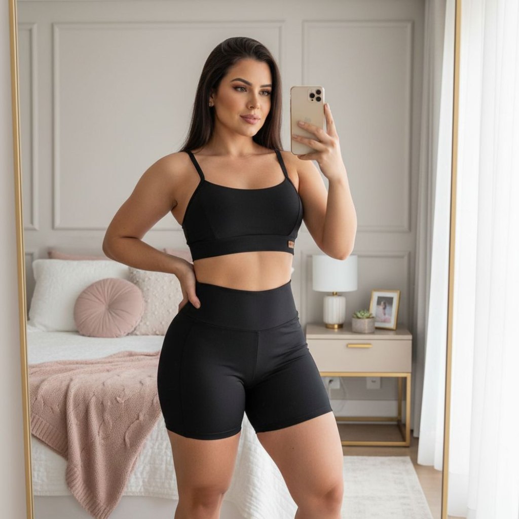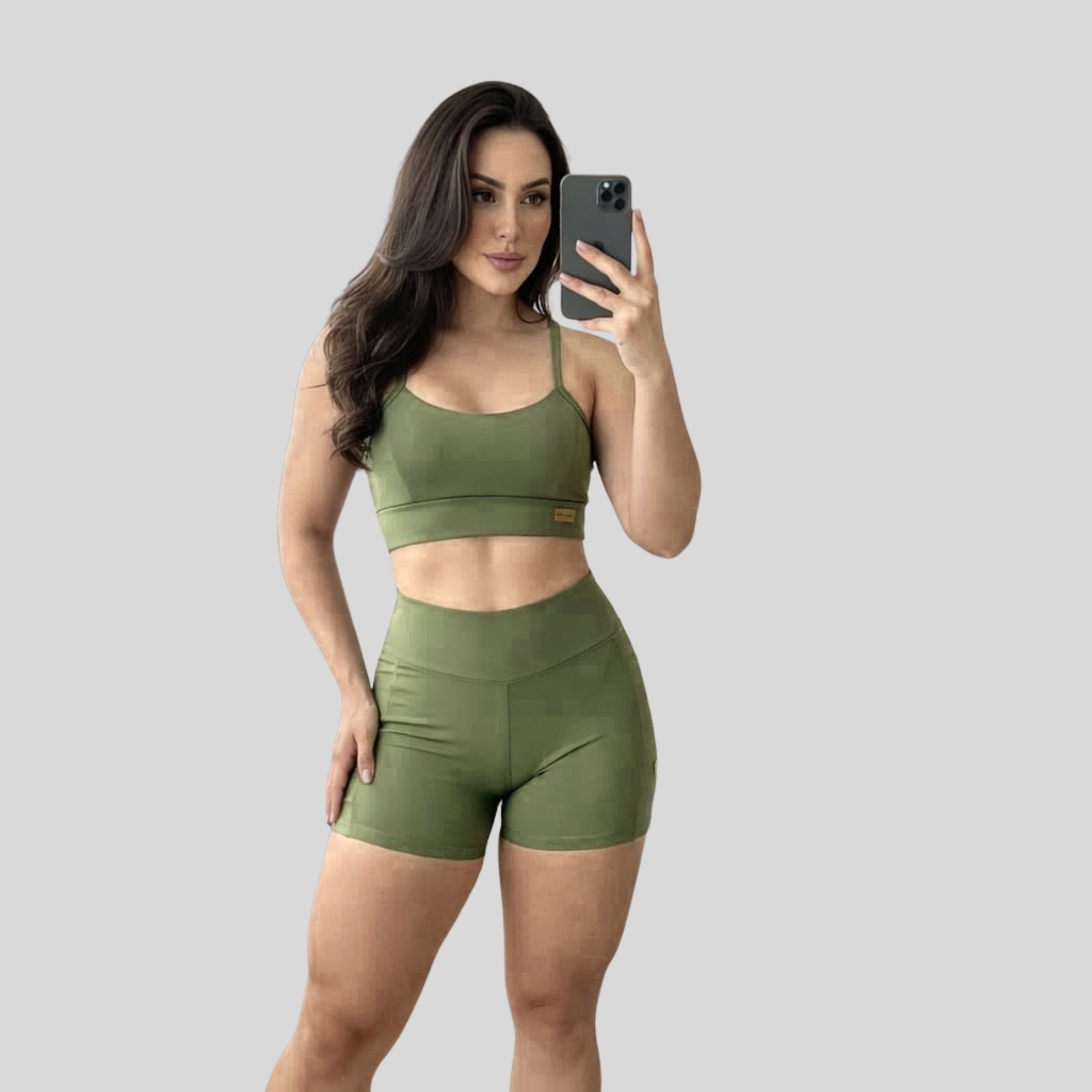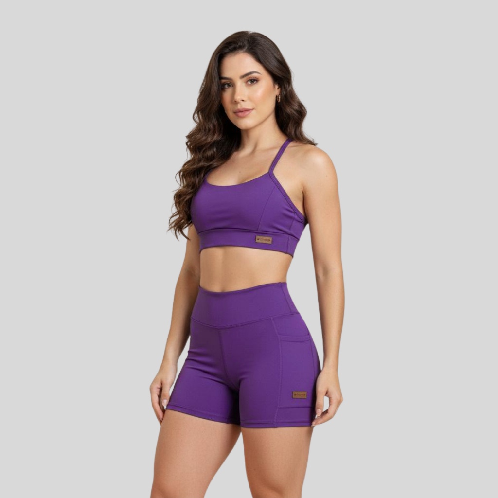 Conjunto Academia Feminino Suplex Power Zero transparência top de Alcinha Short Com Bolso Treino e Corrida