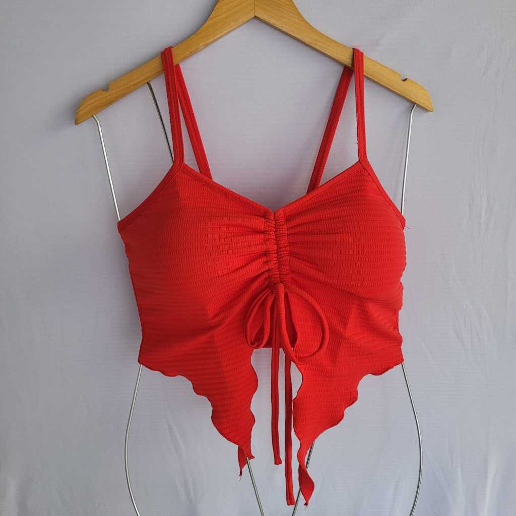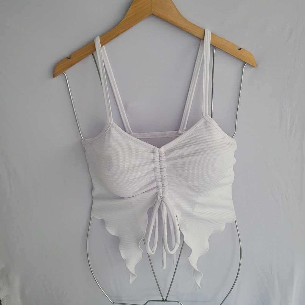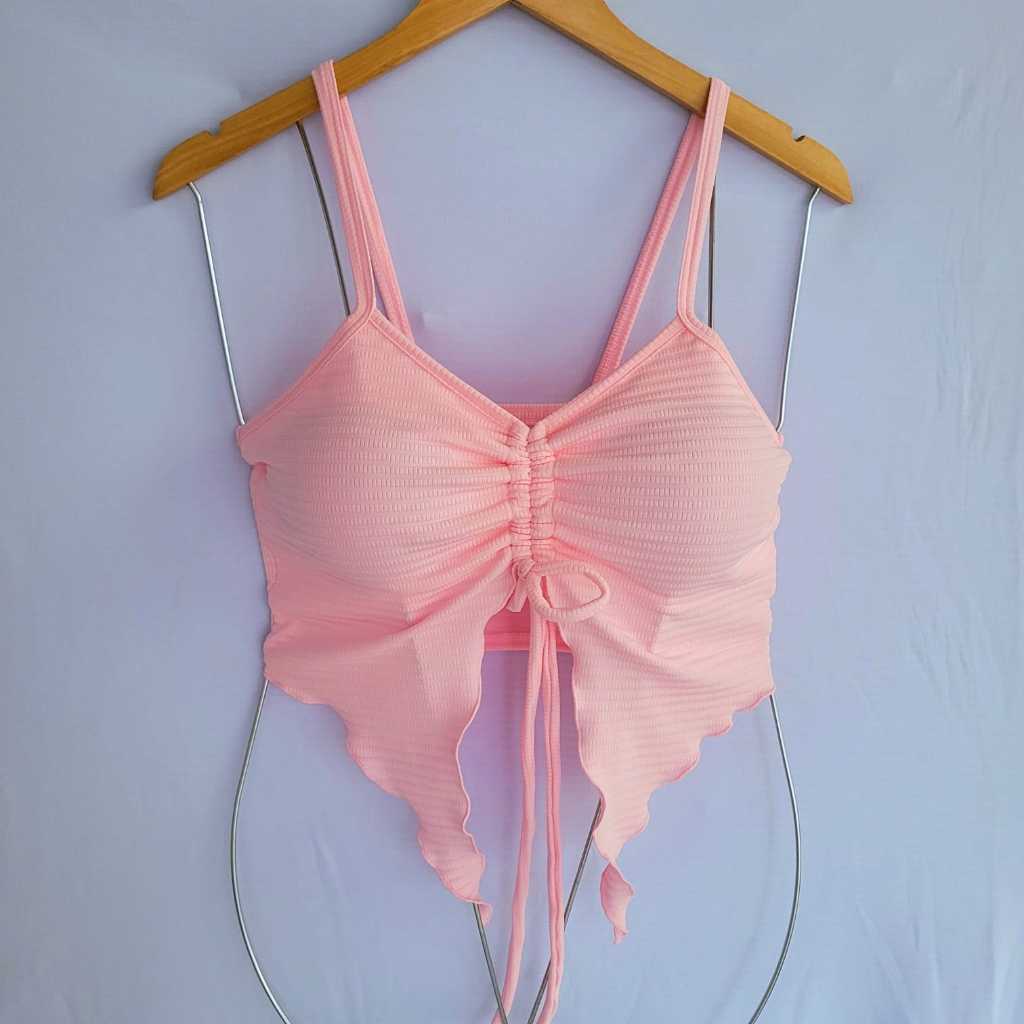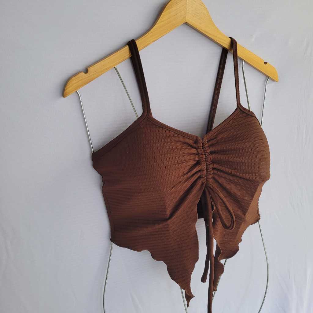 Blusa Cropped Feminina Moda 2025 Tendência Malha Canelada Com Bojo Amarração Ajustável