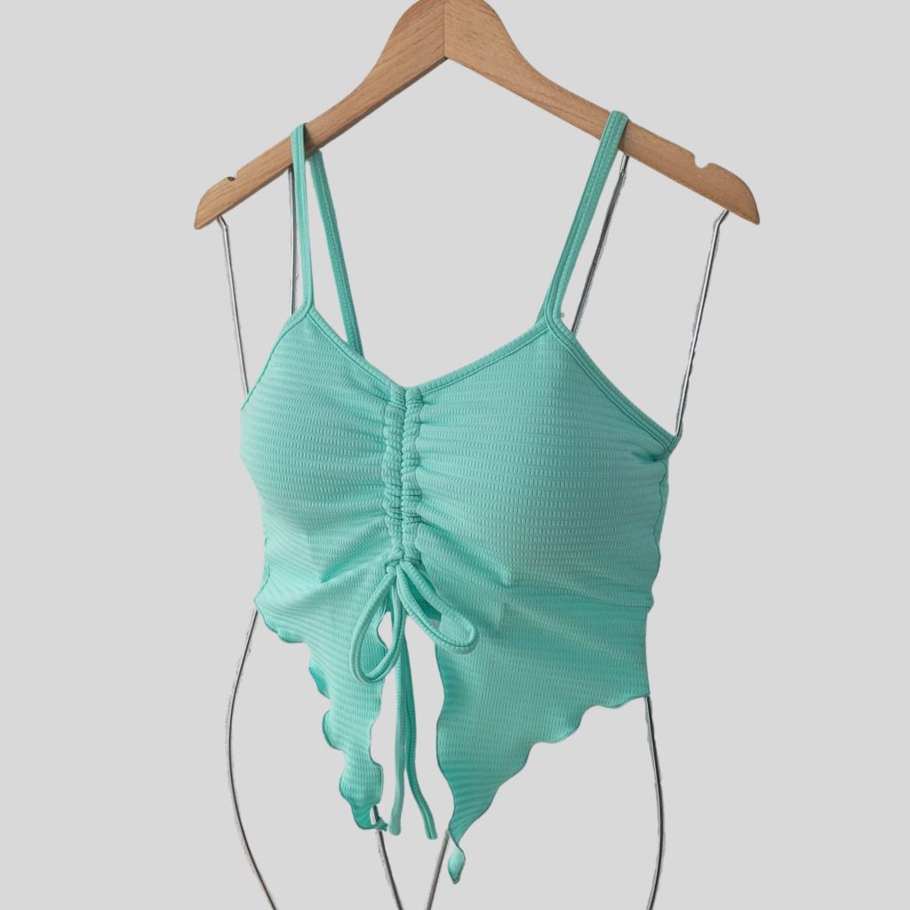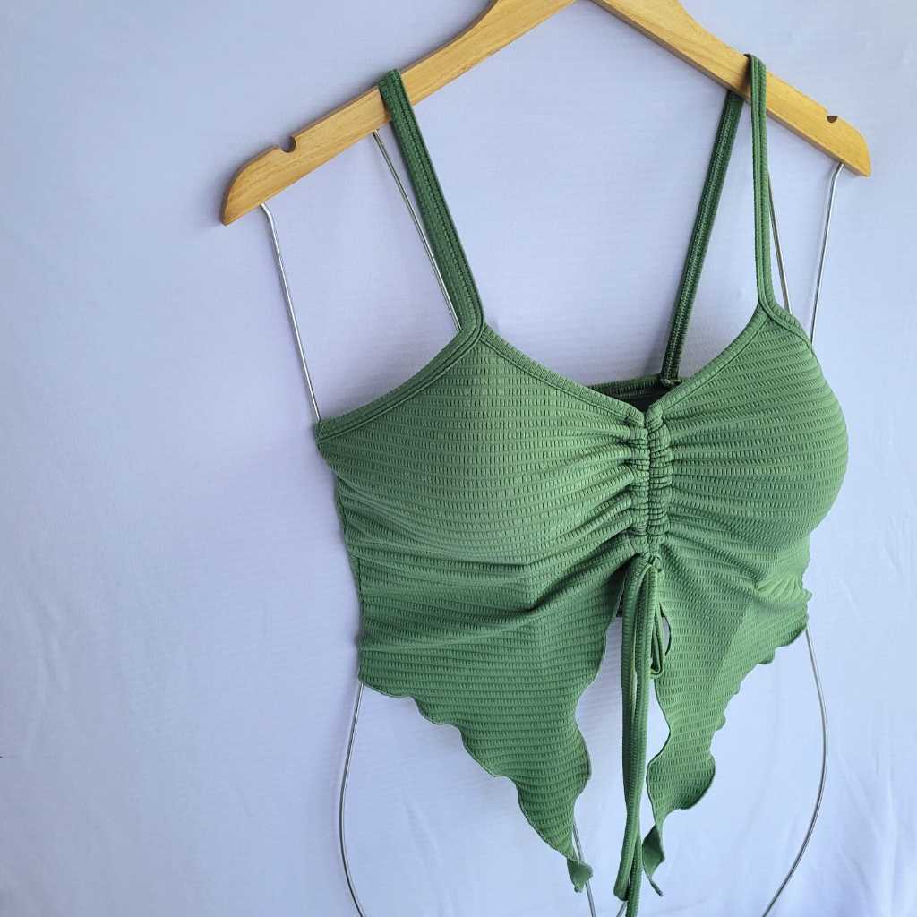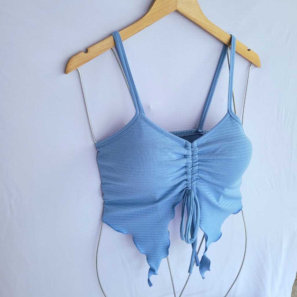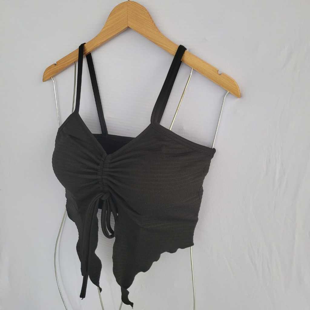 Blusa Cropped Feminina Moda 2025 Tendência Malha Canelada Com Bojo Amarração Ajustável