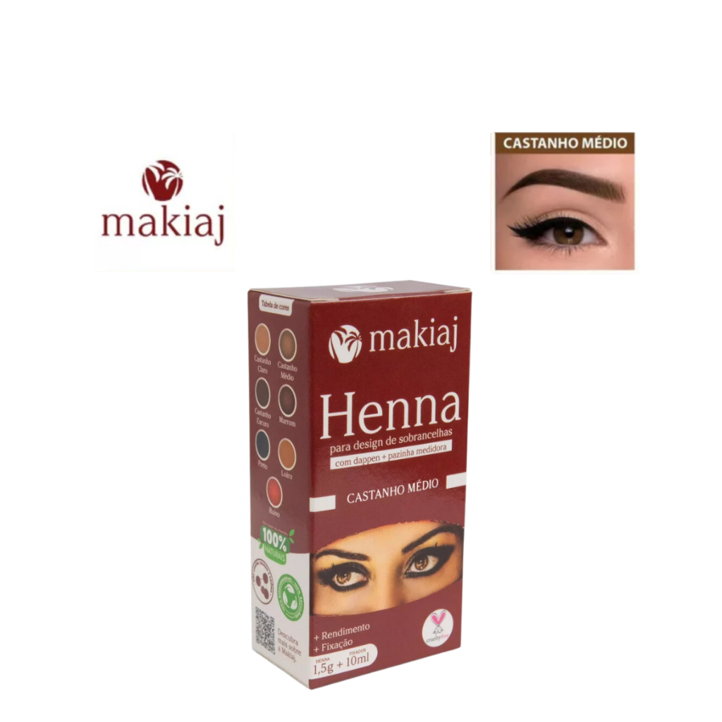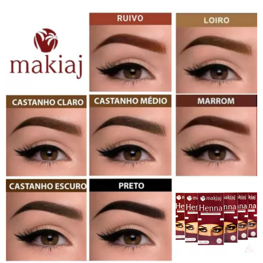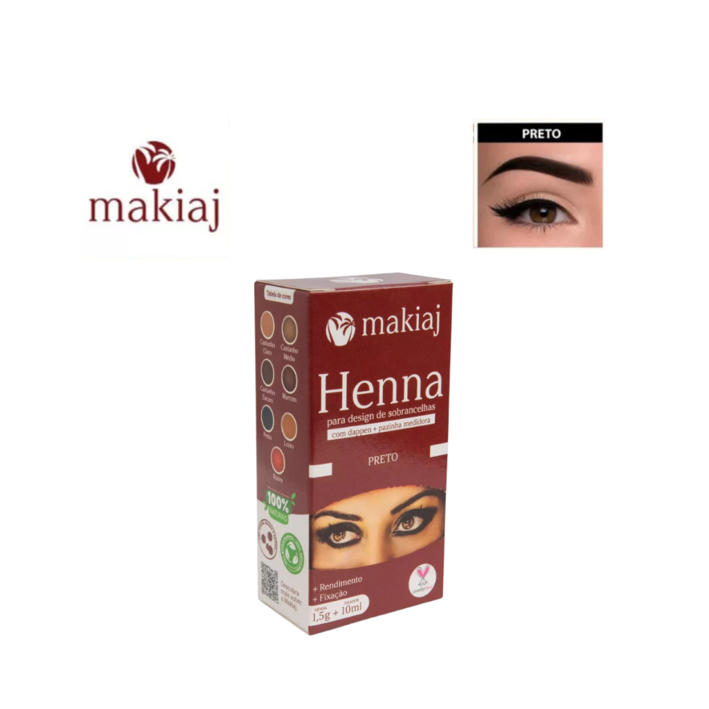Kit 2 Henna De Sombrancelha 1,5g Henna + 10ml Fixador Makiaj Para Desing De Sobrancelhas