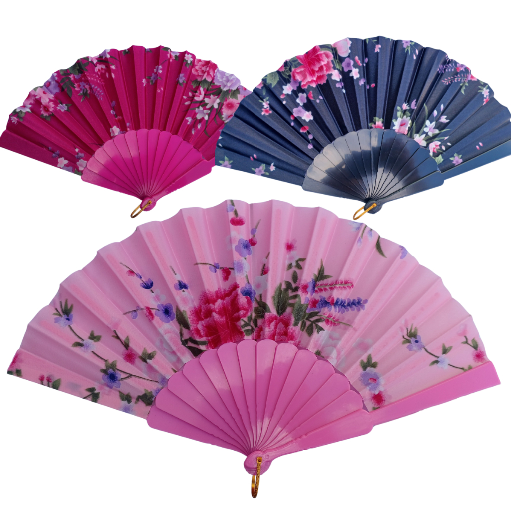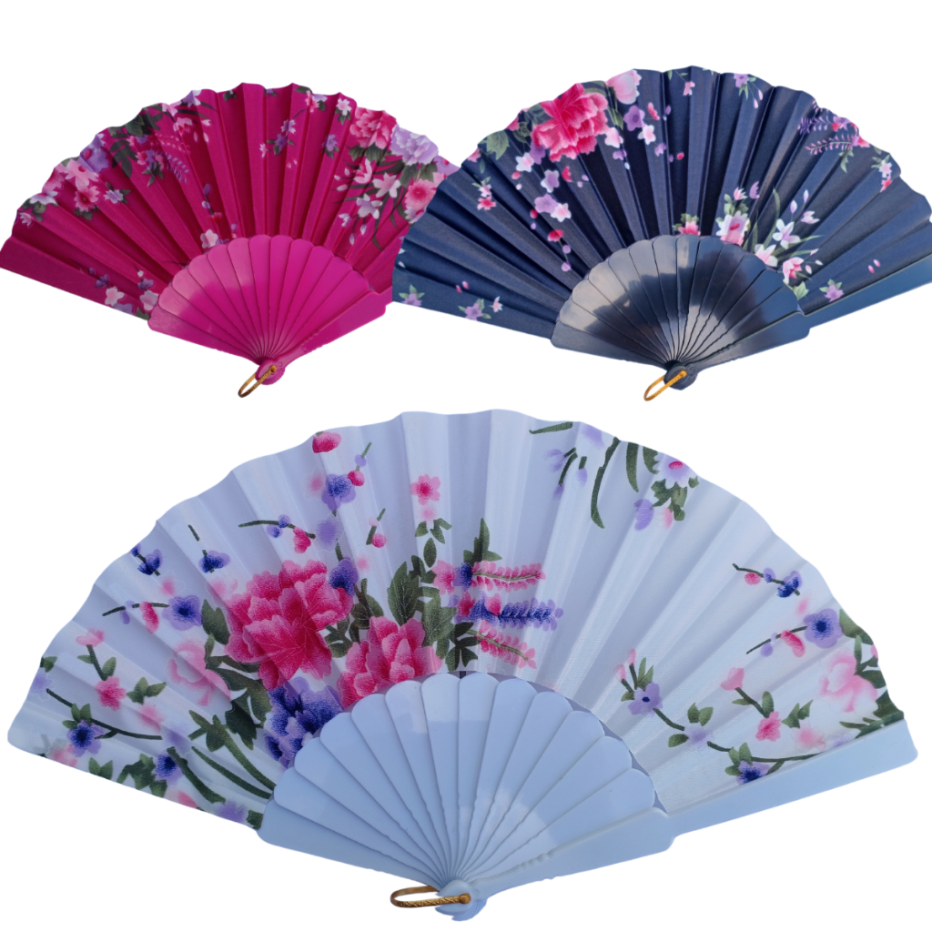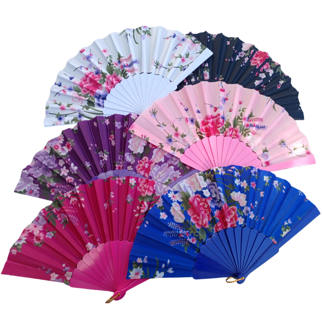 Leque Dobrável com Decoração Florida para Abanar