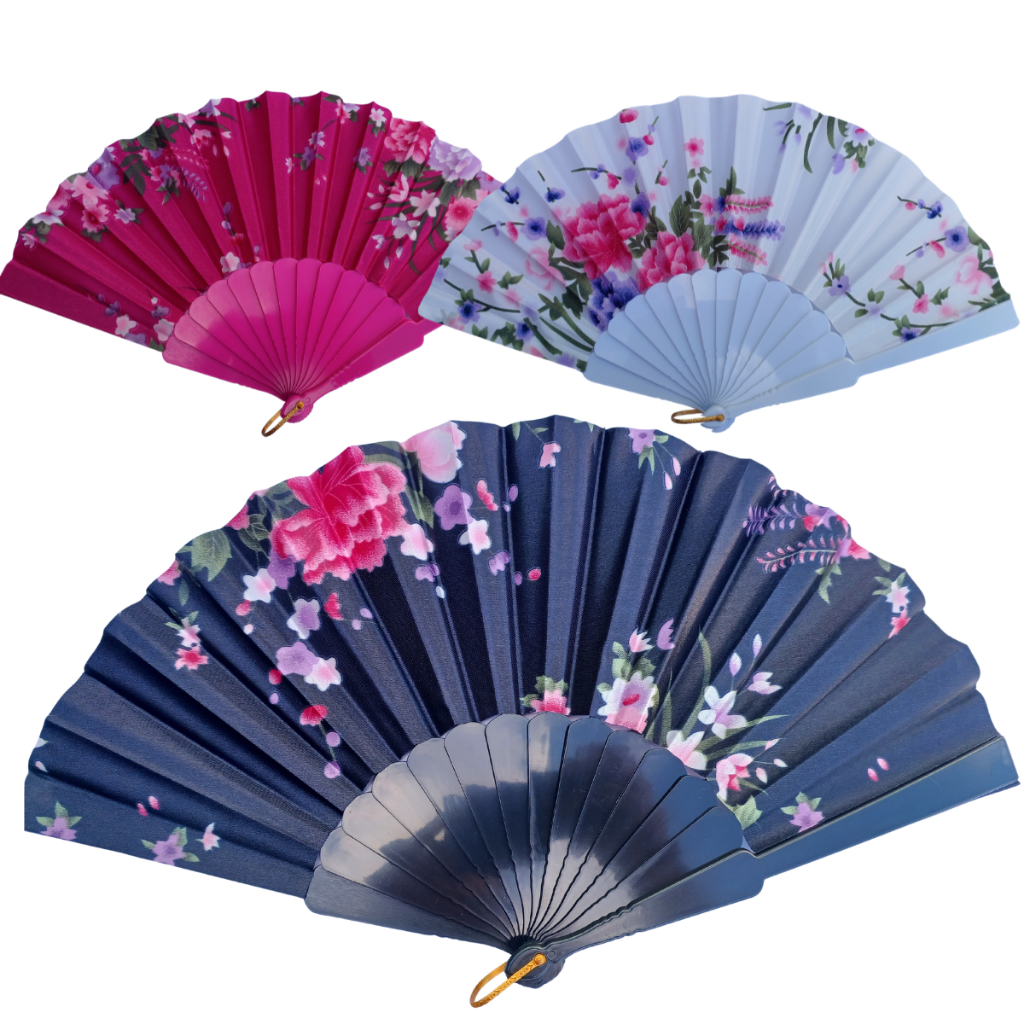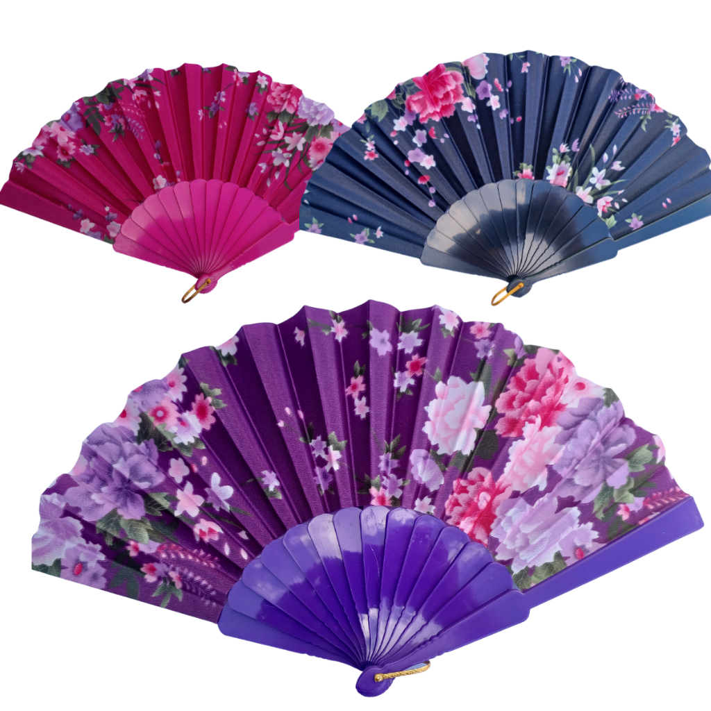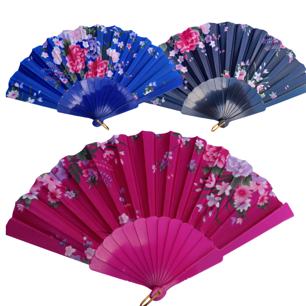 Leque Dobrável com Decoração Florida para Abanar