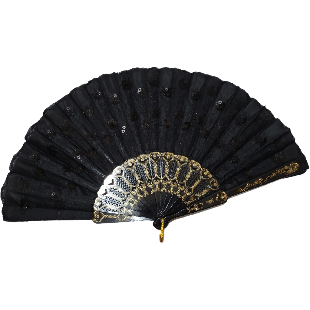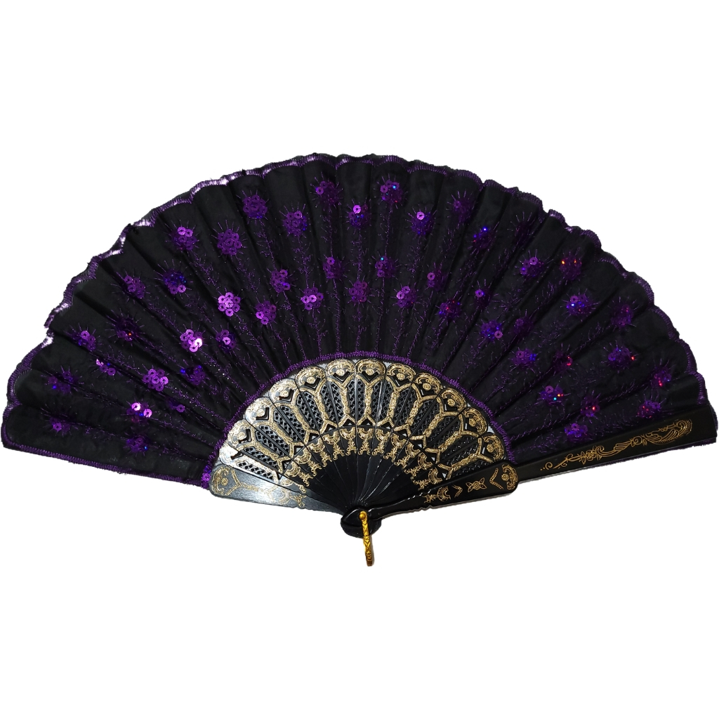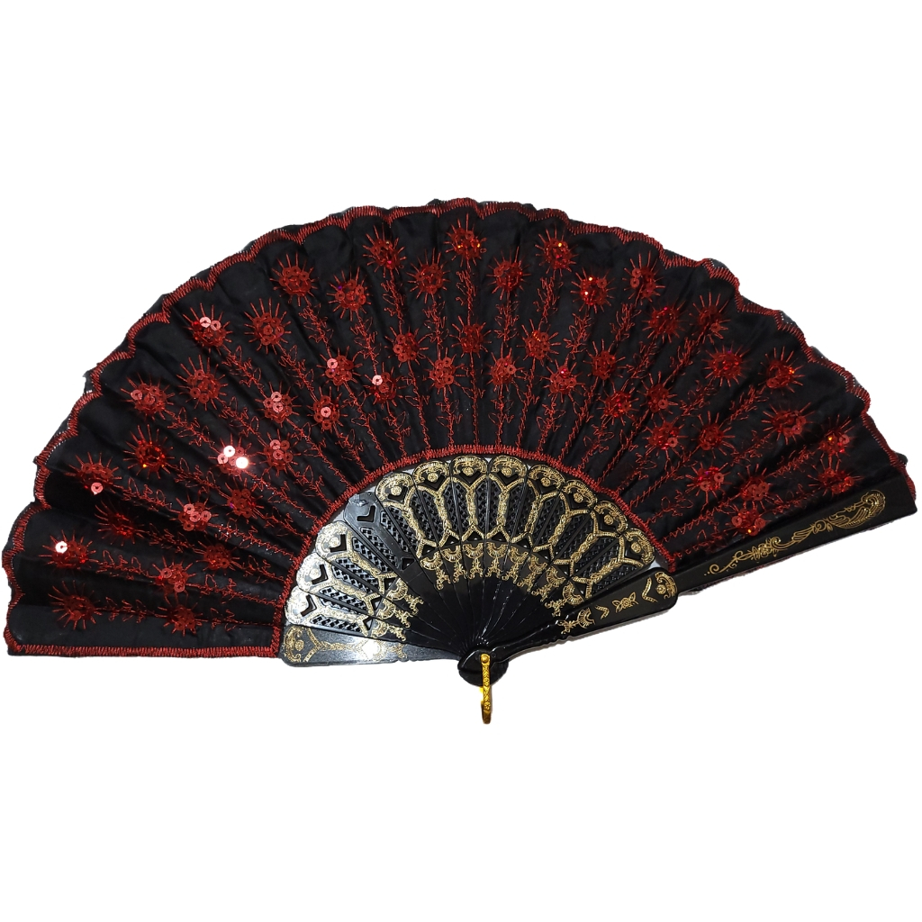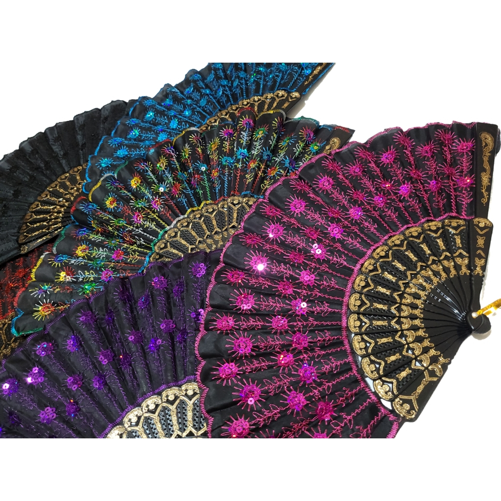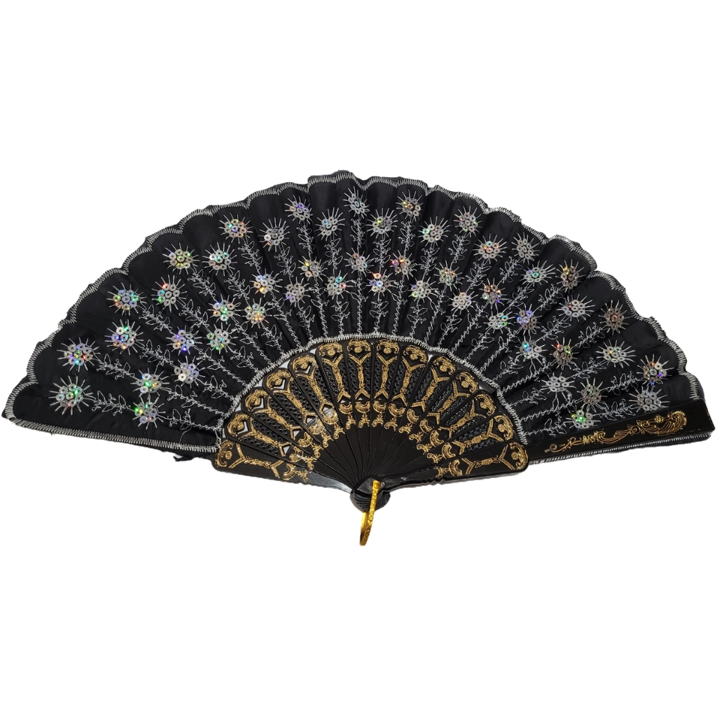 Leque Dobrável Paetê Luxo com Decoração Brilho para Abanar