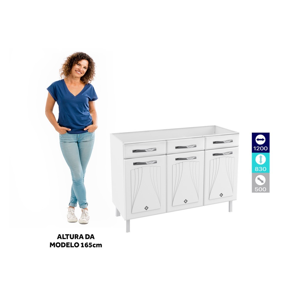 Balcão de Cozinha Aço Star New 3 Portas 2 Gavetas