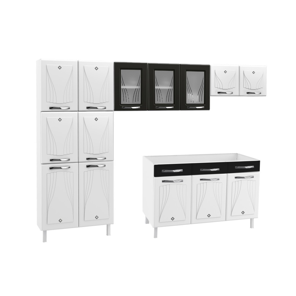 Cozinha de Aço Completa Telasul Star New Pto 3Vidros Balcão p/ Pia