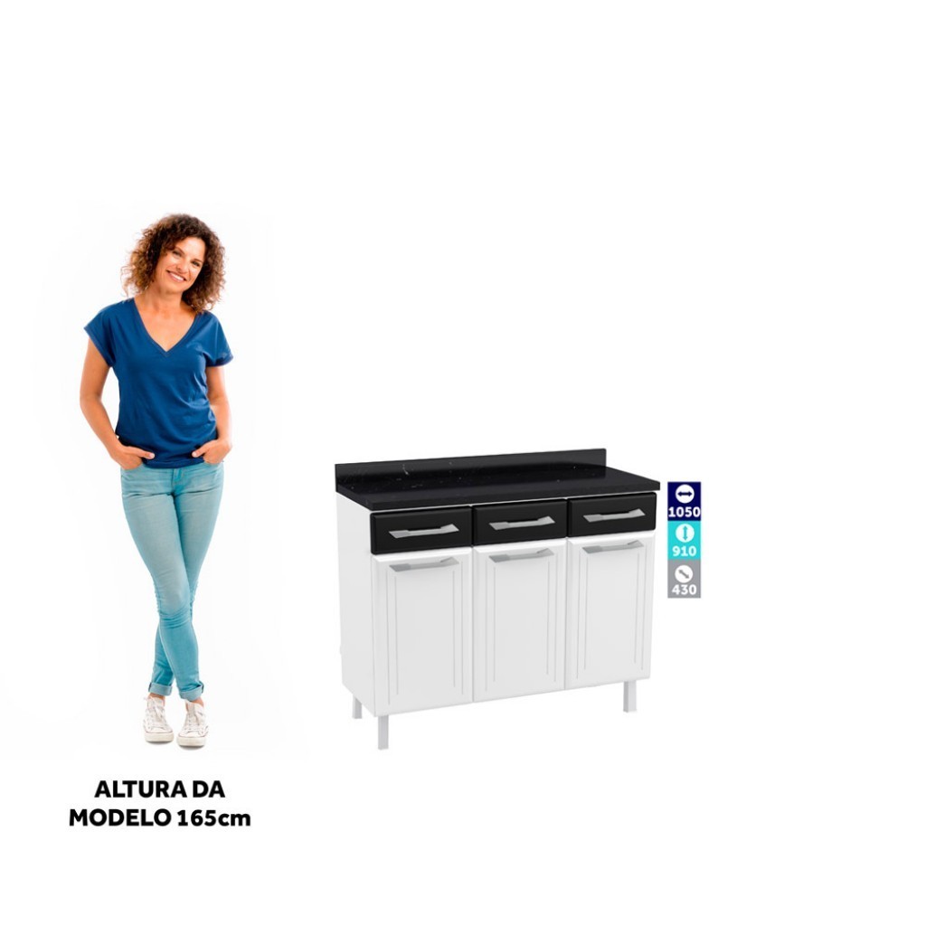 Balcão de Cozinha de Aço Triplo Telasul Topázio C/ Tampo Branco/Preto