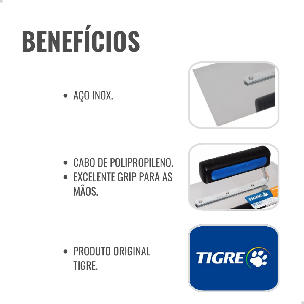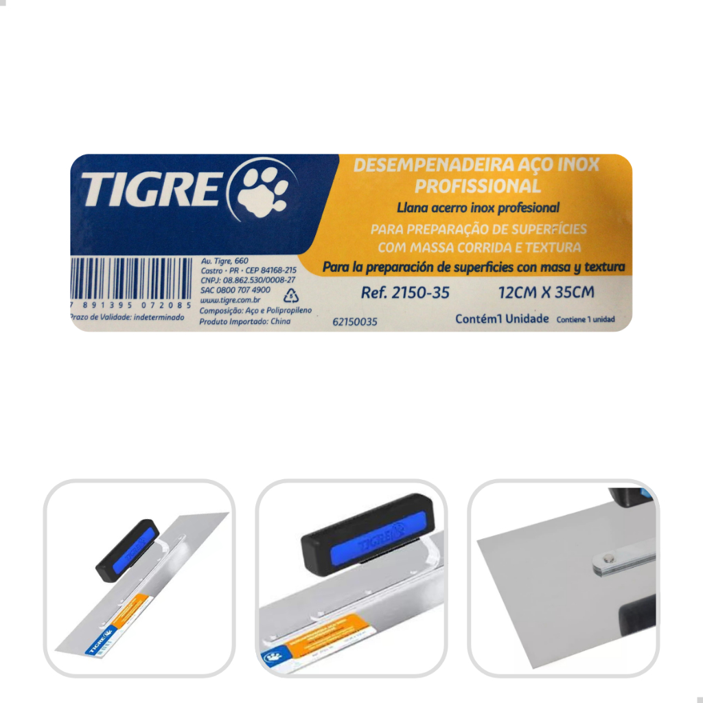 Desempenadeira De Aço Inox Cabo Aberto 35CM Tigre