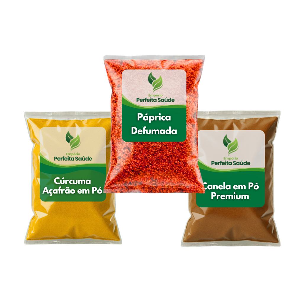 Kit Mix de Temperos Naturais – Páprica Defumada + Cúrcuma Açafrão da Terra + Canela em Pó | Especiarias Premium