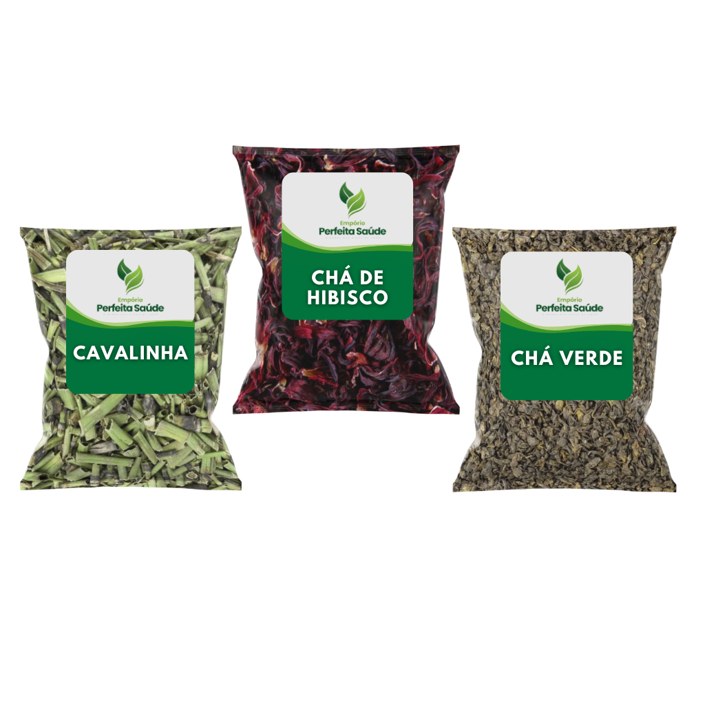Kit Chá Detox Termogênico e Diurético Hibisco Cavalinha e Chá Verde