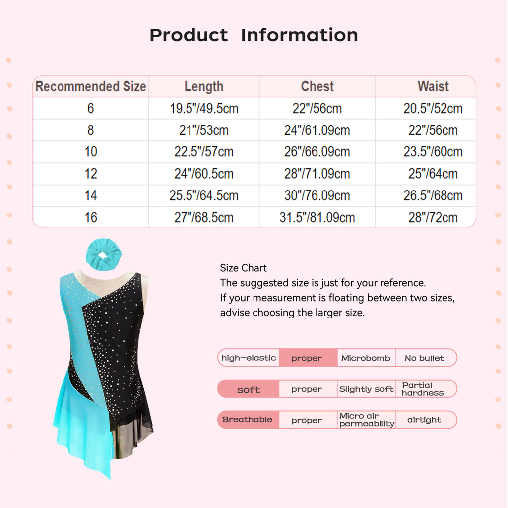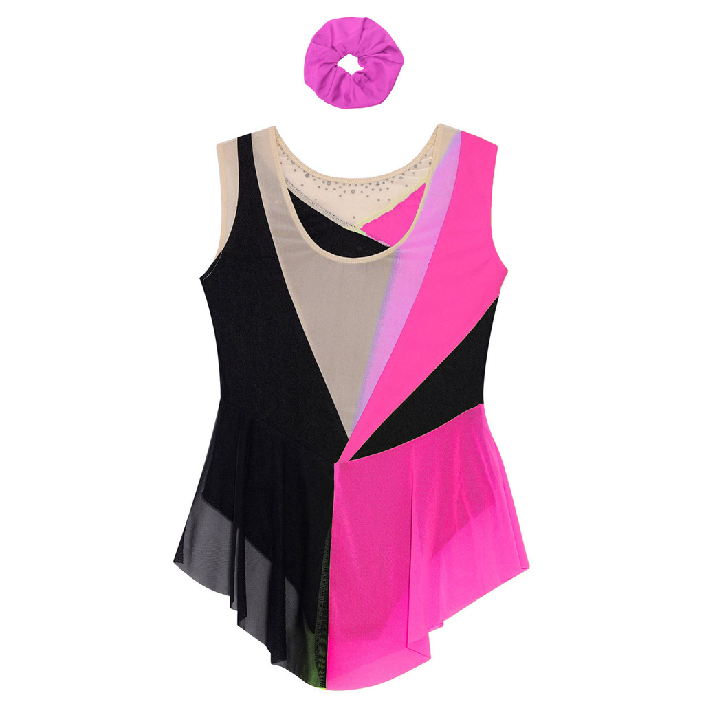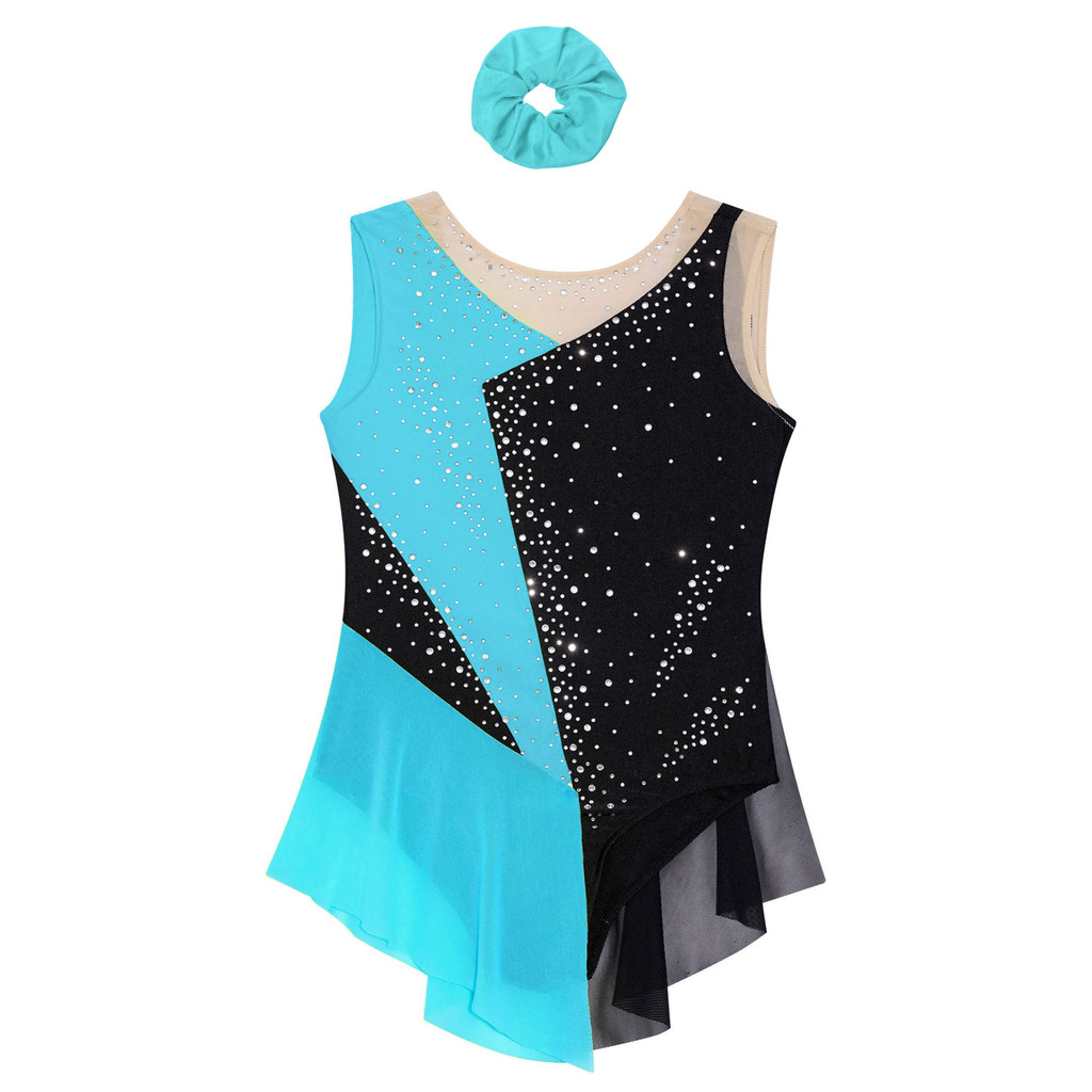 MSemis Crianças Meninas Patinação Artística Dança Roupa Brilhante Strass Cor Bloco Collant Pura Malha Retalhos Sem Manga