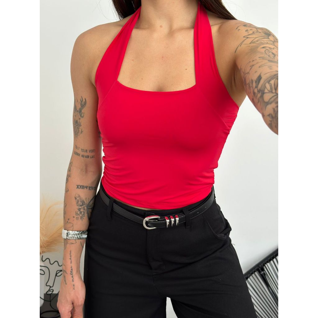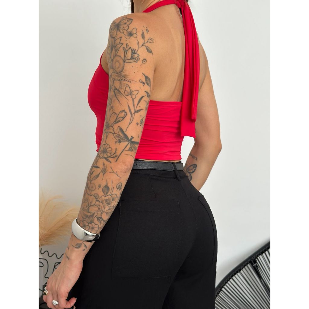 Top cropped halter levemente franzido na lateral com amarração frente dupla - Elegância e conforto