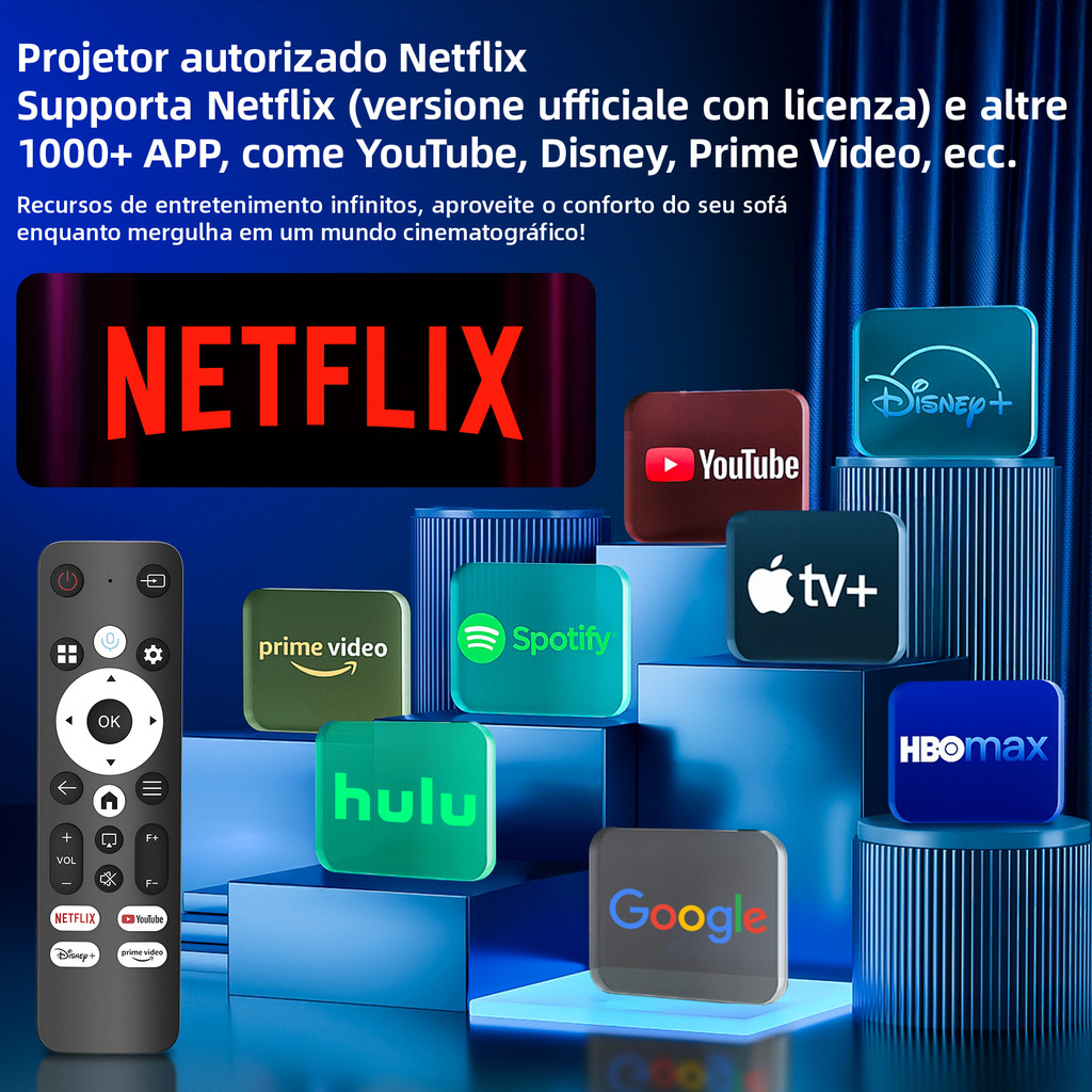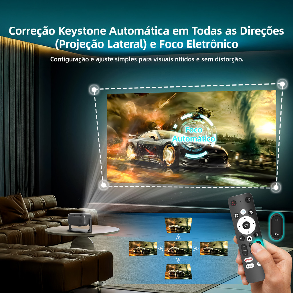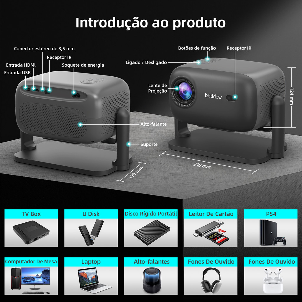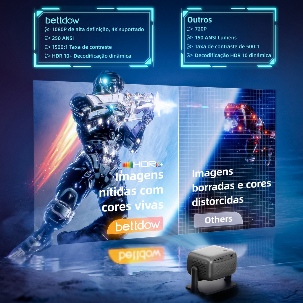 Projetor Bettdow 1080P Full 4K, imagem selada 500 ANSI, Dolby original, foco automático HDMI 2.1, para casa e exterior