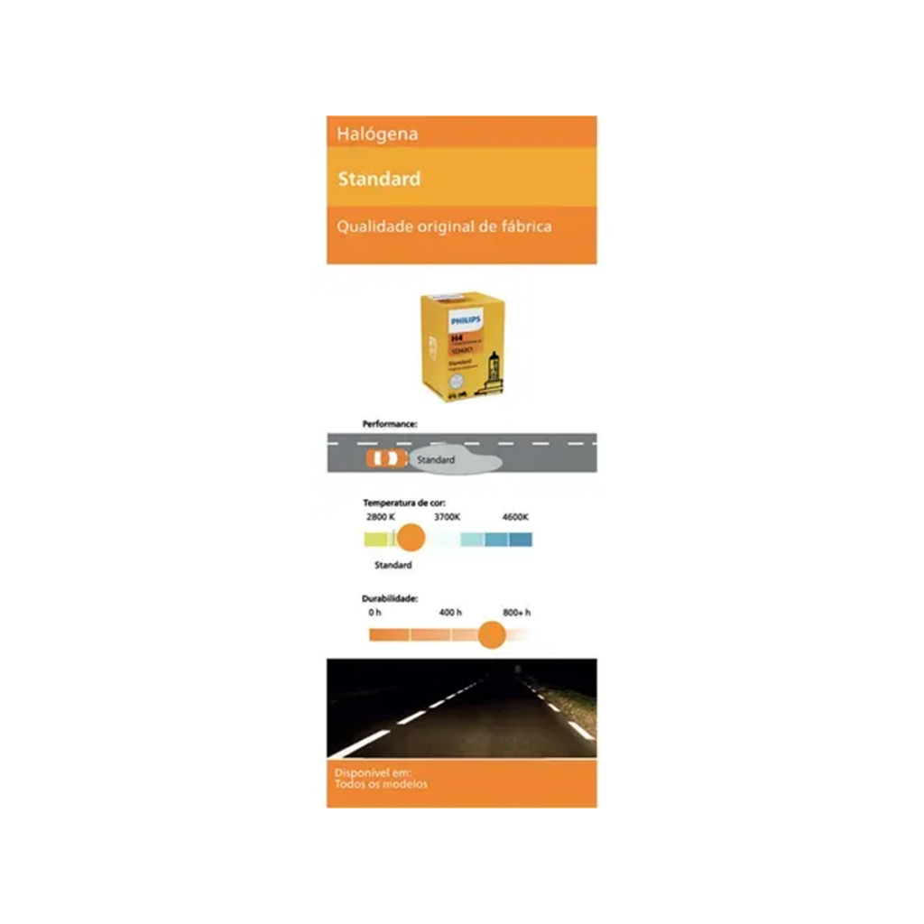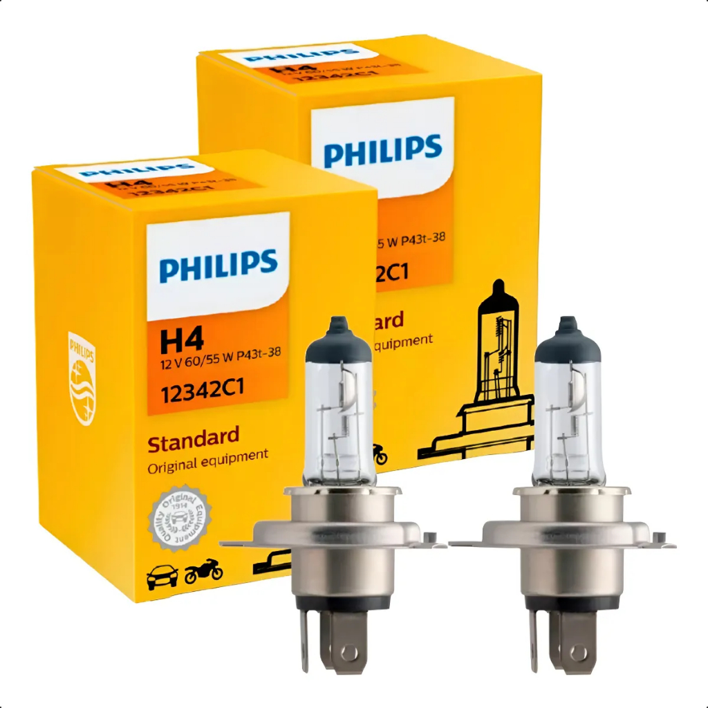 Par Lâmpada Standard Philips H4 Original Farol Alto Baixo 55W 12V Luz Amarela Potente Durável
