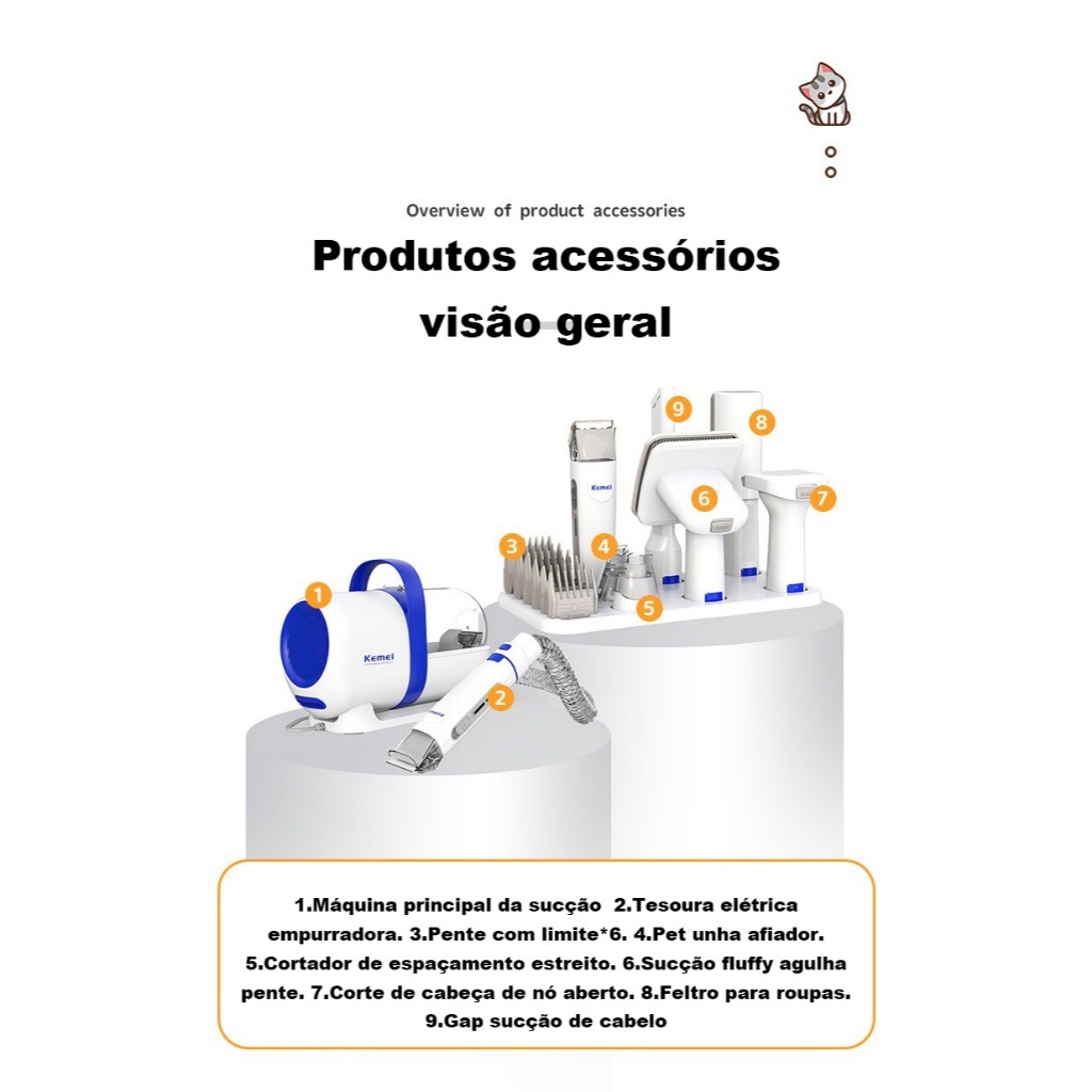 Kemei-CW2098 220V Máquina elétrica para cuidar de animais de estimação Kit multifuncional 15 em 1