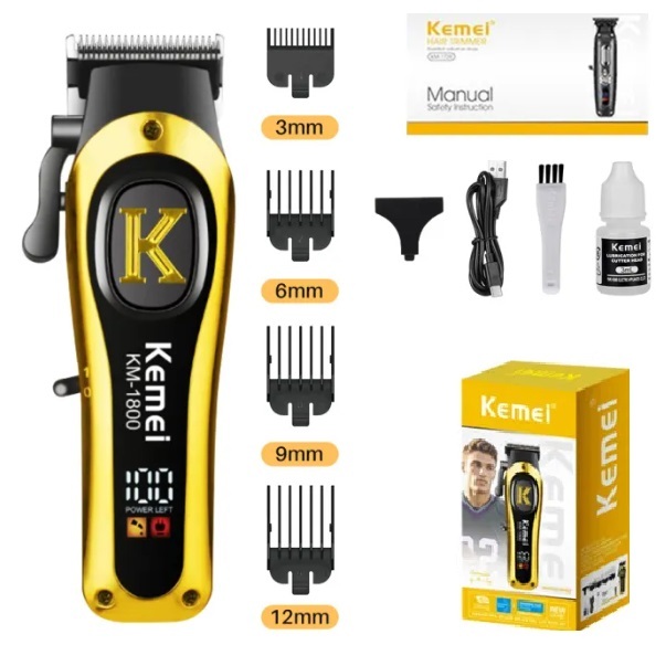 KM-1800 Máquina de Corte Profissional Kemei PRO Recarregável Sem Fio Bateria Alta duração 6.800 RPM