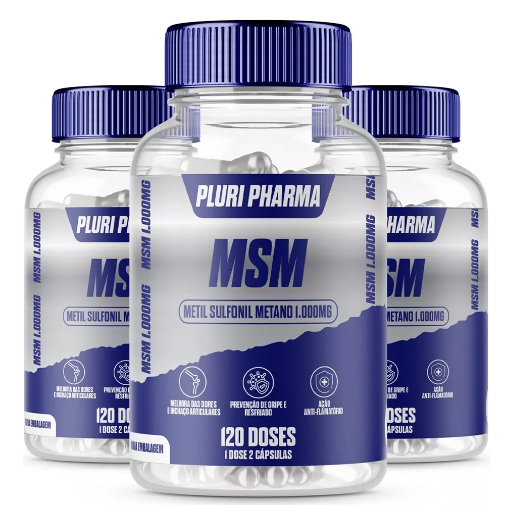 3 Potes Msm (enxofre Orgânico) 1.000mg C/120 Doses
