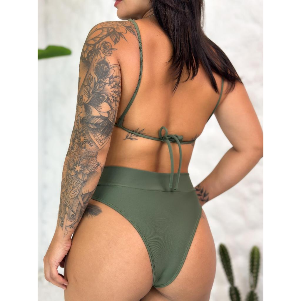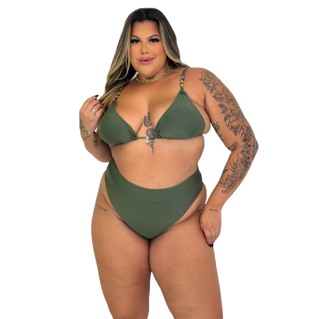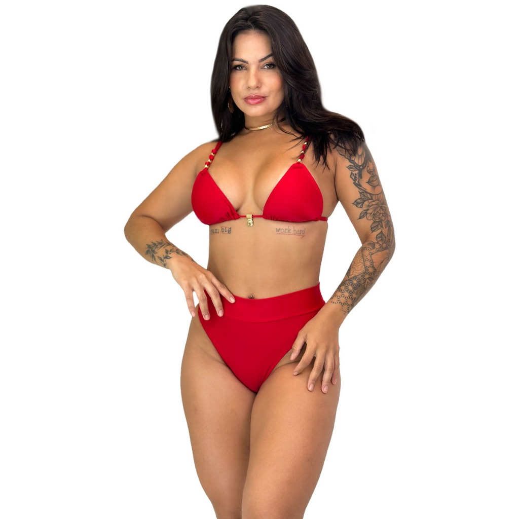 Biquini de alta sustentaçao cós alto hotpant bojo removível acessórios dourados
