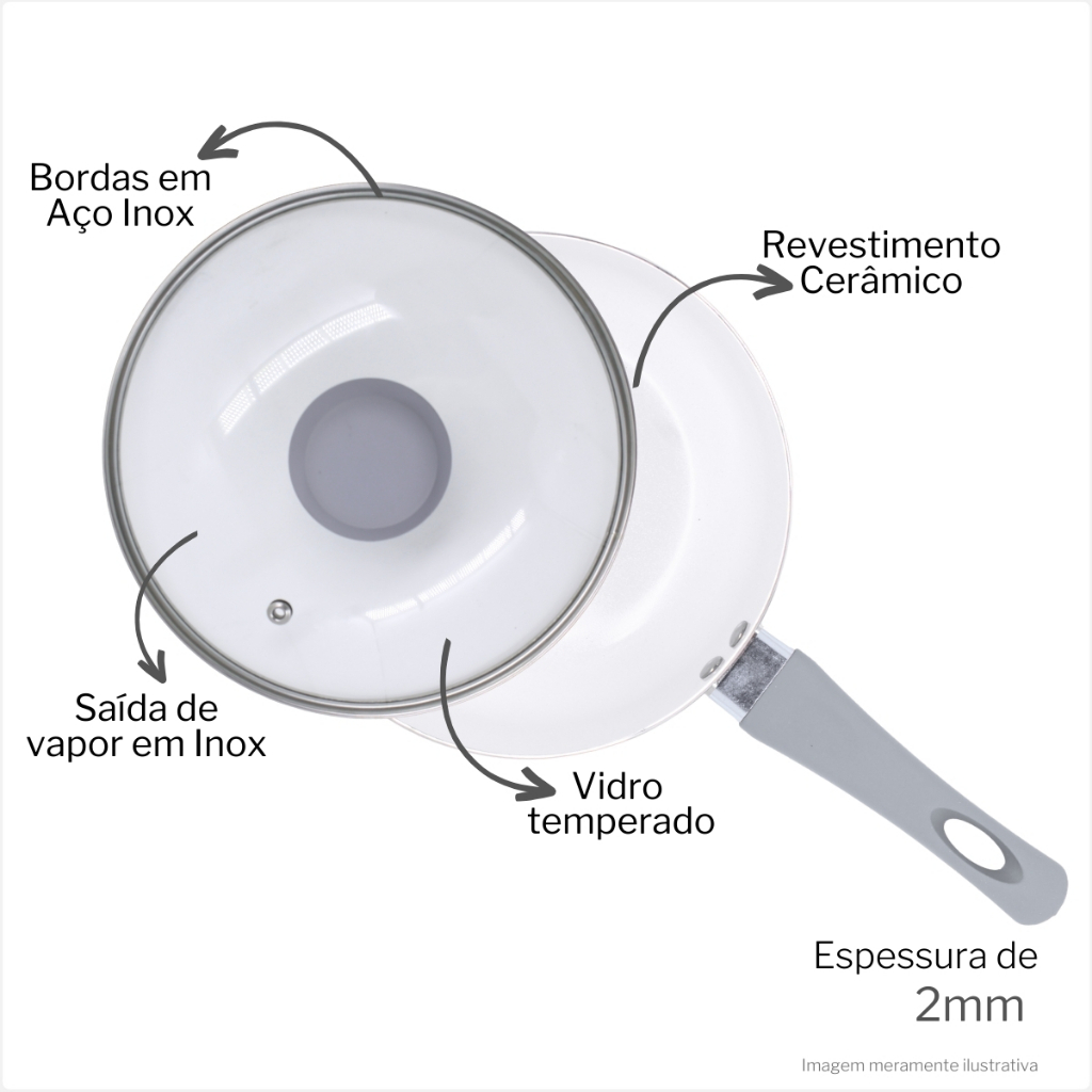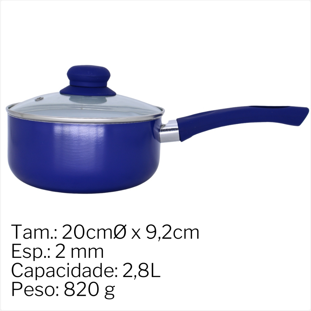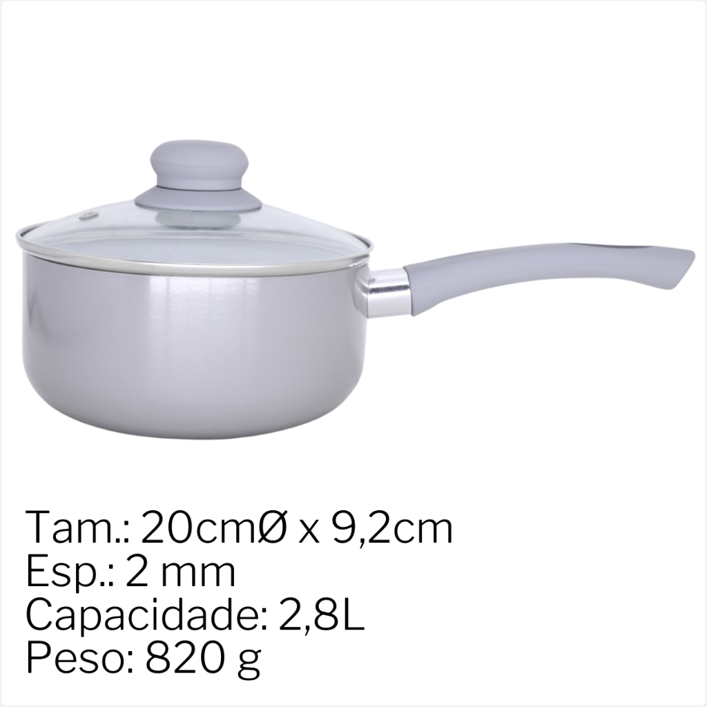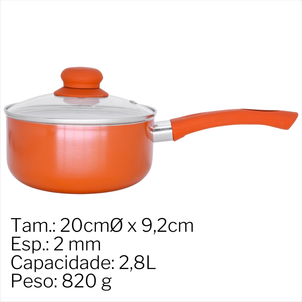 Panelas Revestimento Ceramico Antiaderente 20cm Com Tampa de Vidro