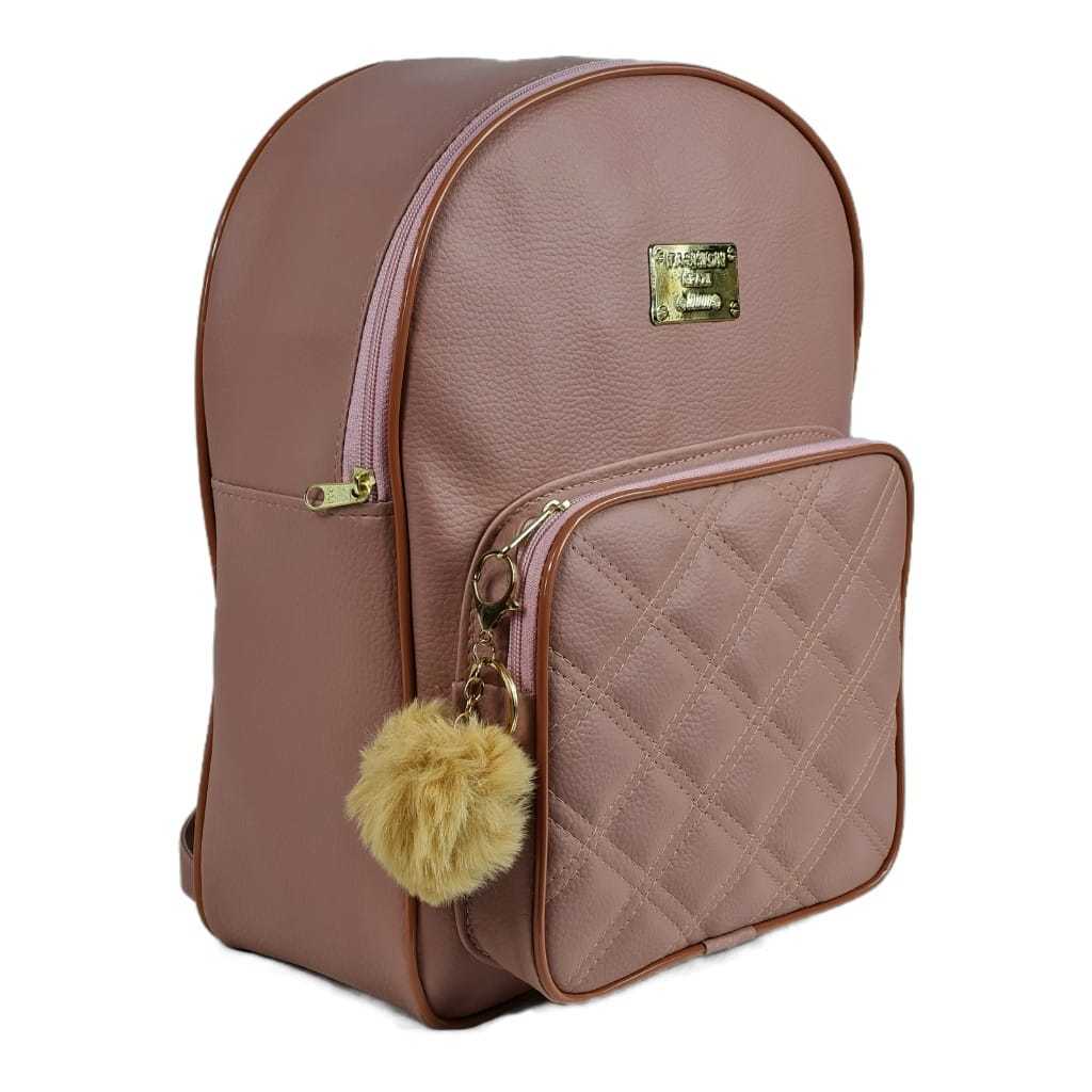 Mochila Feminina, Mochilinha Pequena e Estilosa, Perfeita Para a Faculdade ou Escola + POMPOM